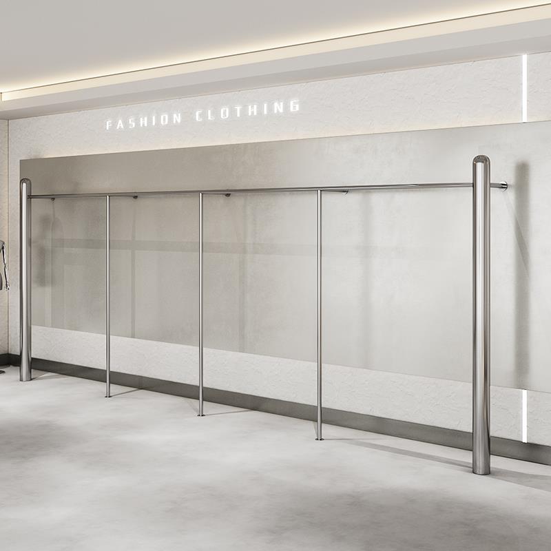 店男装 不锈钢银色上墙挂衣杆女装 店货架陈列架 店展示架落地式 服装