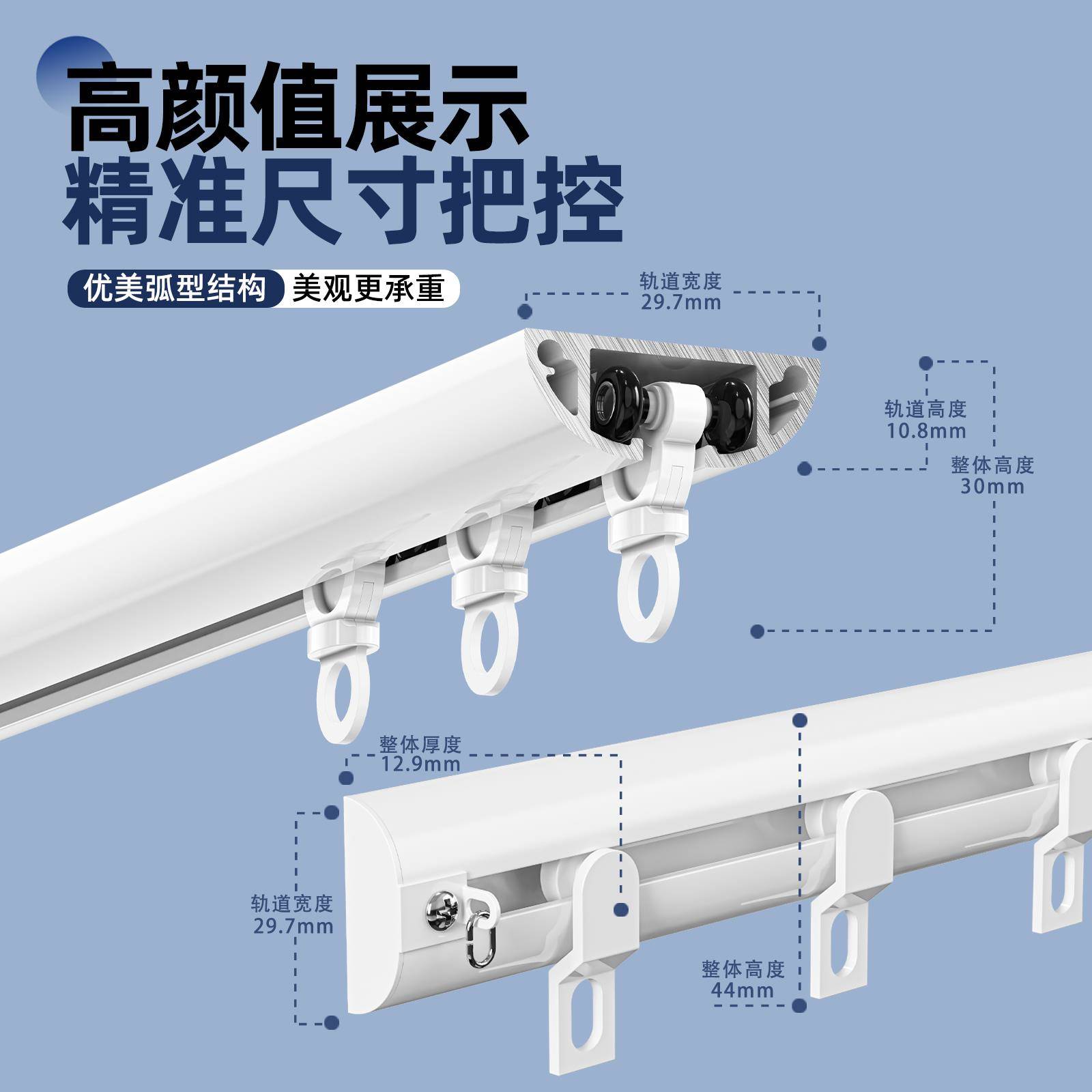 侧装 铝合金导轨简约不漏光 专用窗帘轨道免打孔自粘滑轨v型挂钩式