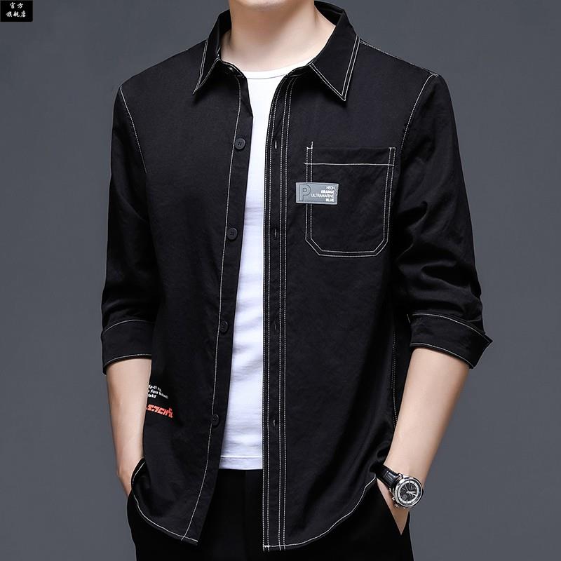日系水洗复古潮牌痞帅工装 男2025秋季 衬衣外套 牛仔衬衫 hansca长袖