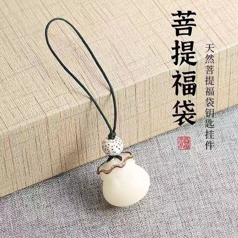 天然菩提招财福袋手机链手工编织精致汽车钥匙扣编织中国风挂件