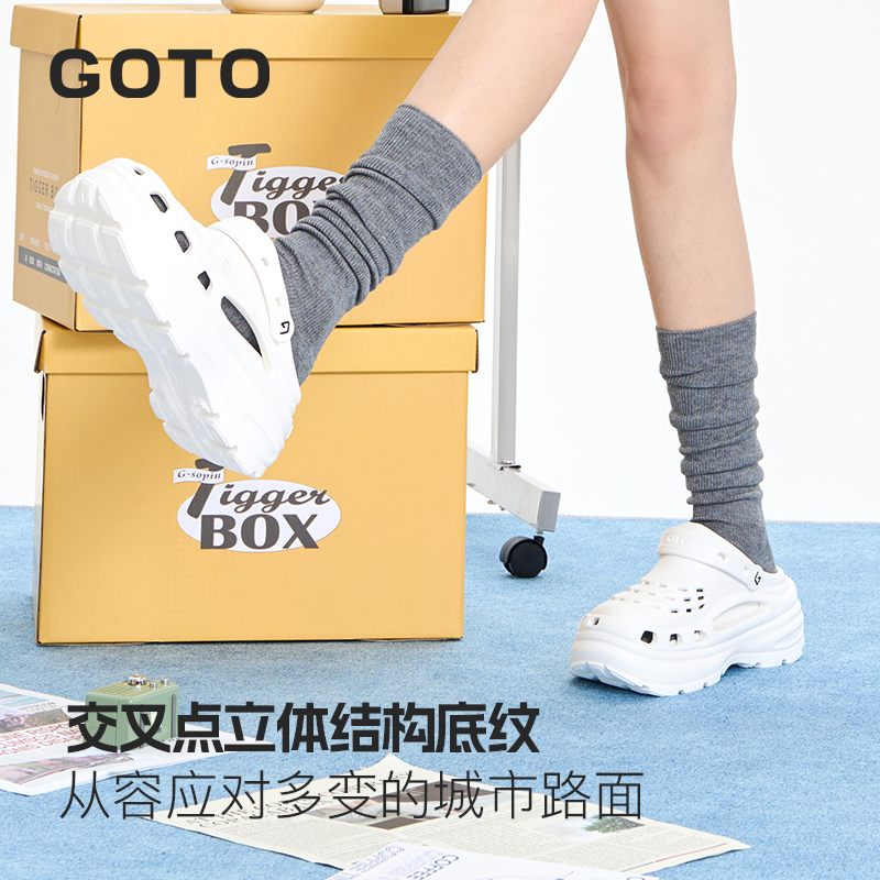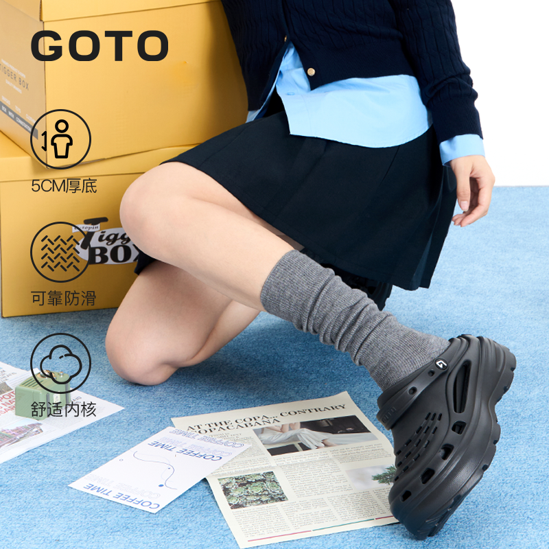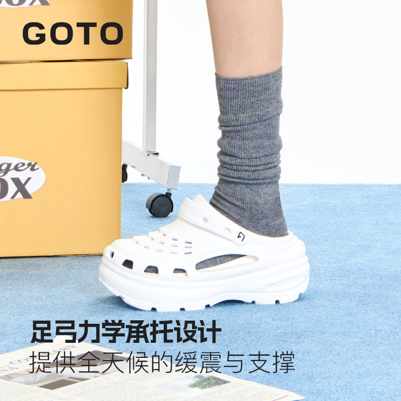 一脚蹬沙滩鞋 GOTO波波厚底洞洞鞋 旅游凉鞋 两穿拖鞋 徒步玩水 女款