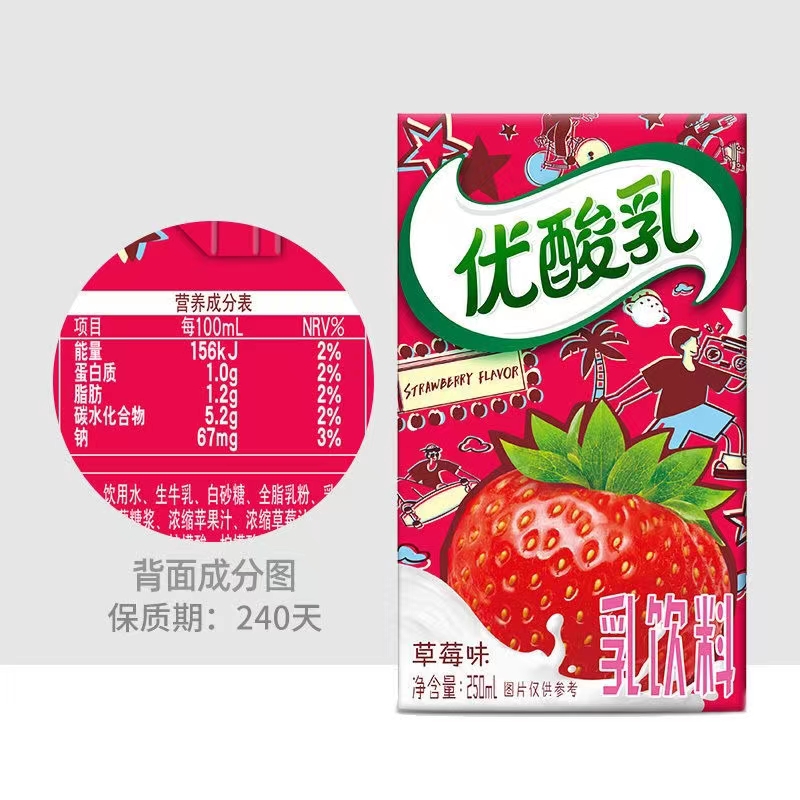 24盒多口味早餐伴侣 9月伊利优酸乳原味草莓味250ml 整箱送礼