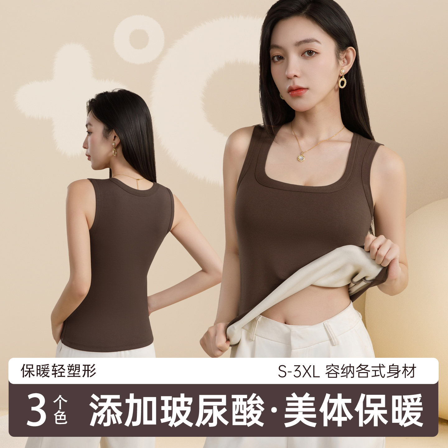 新款 时髦方领保暖背心女大码 胖mm加绒加厚内衣贴身舒适上衣秋冬季