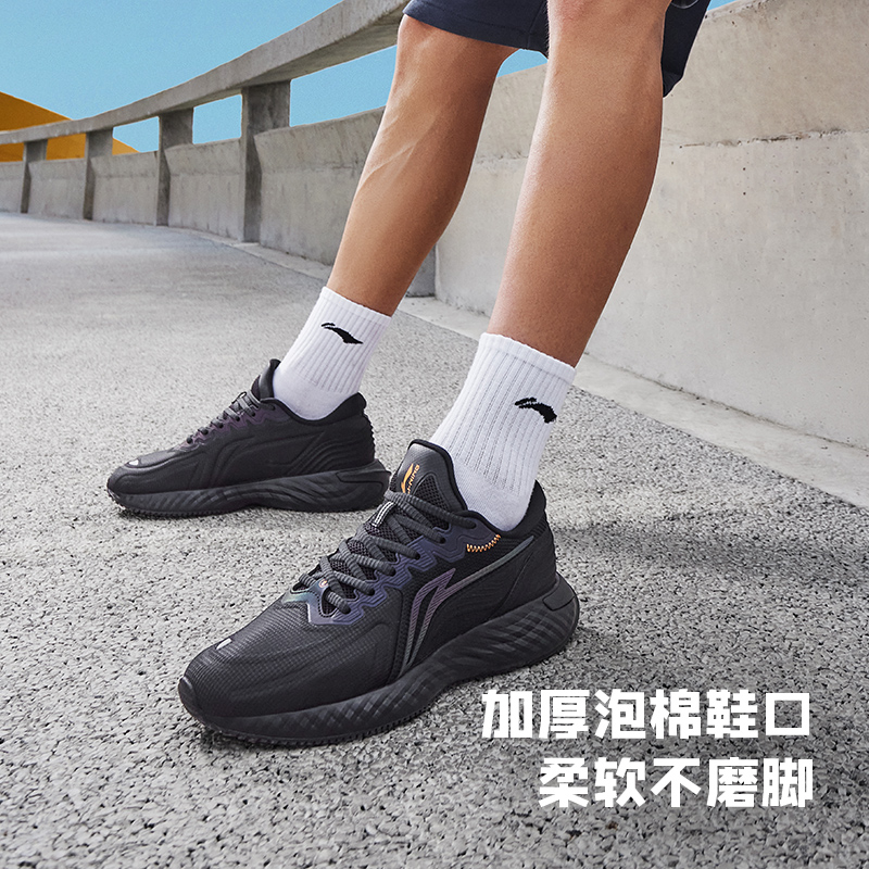 减震休闲男鞋 鸣鸥3鸿星尔克运动鞋 皮面防水跑鞋 男新款 秋冬跑步鞋
