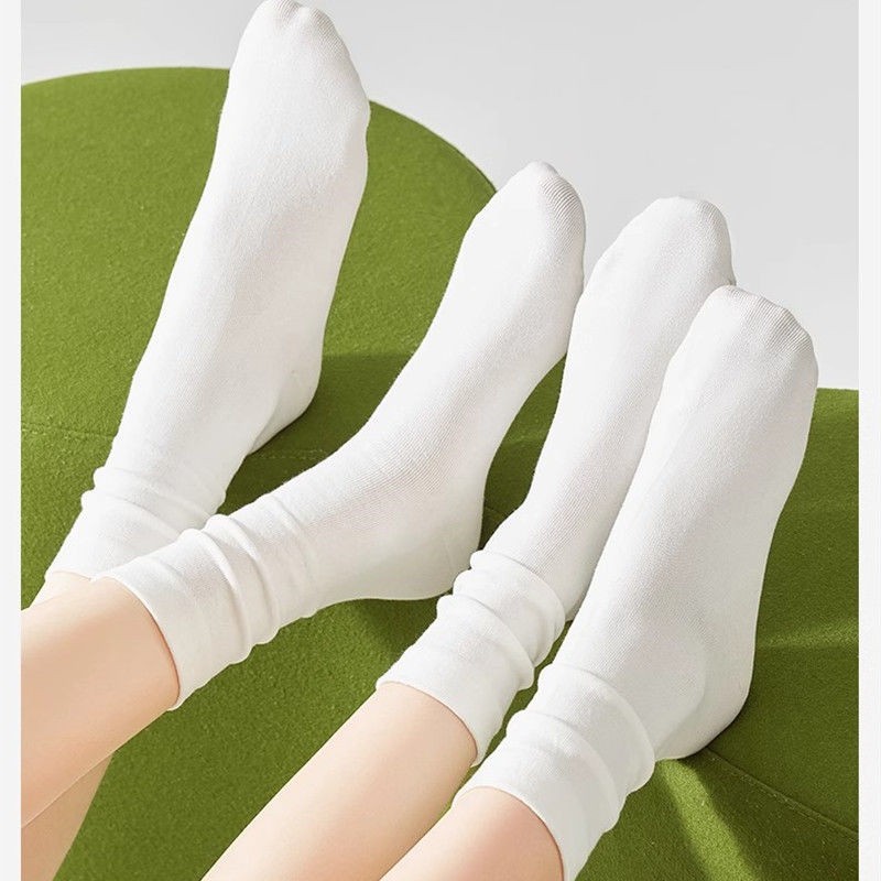 袜子女款 冬天堆堆袜白色防臭吸汗中筒月子袜 春秋无骨袜搭配小皮鞋