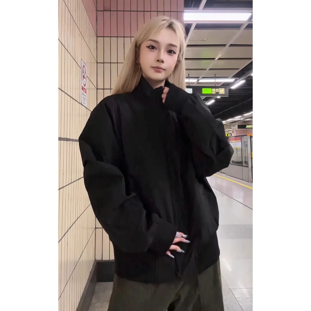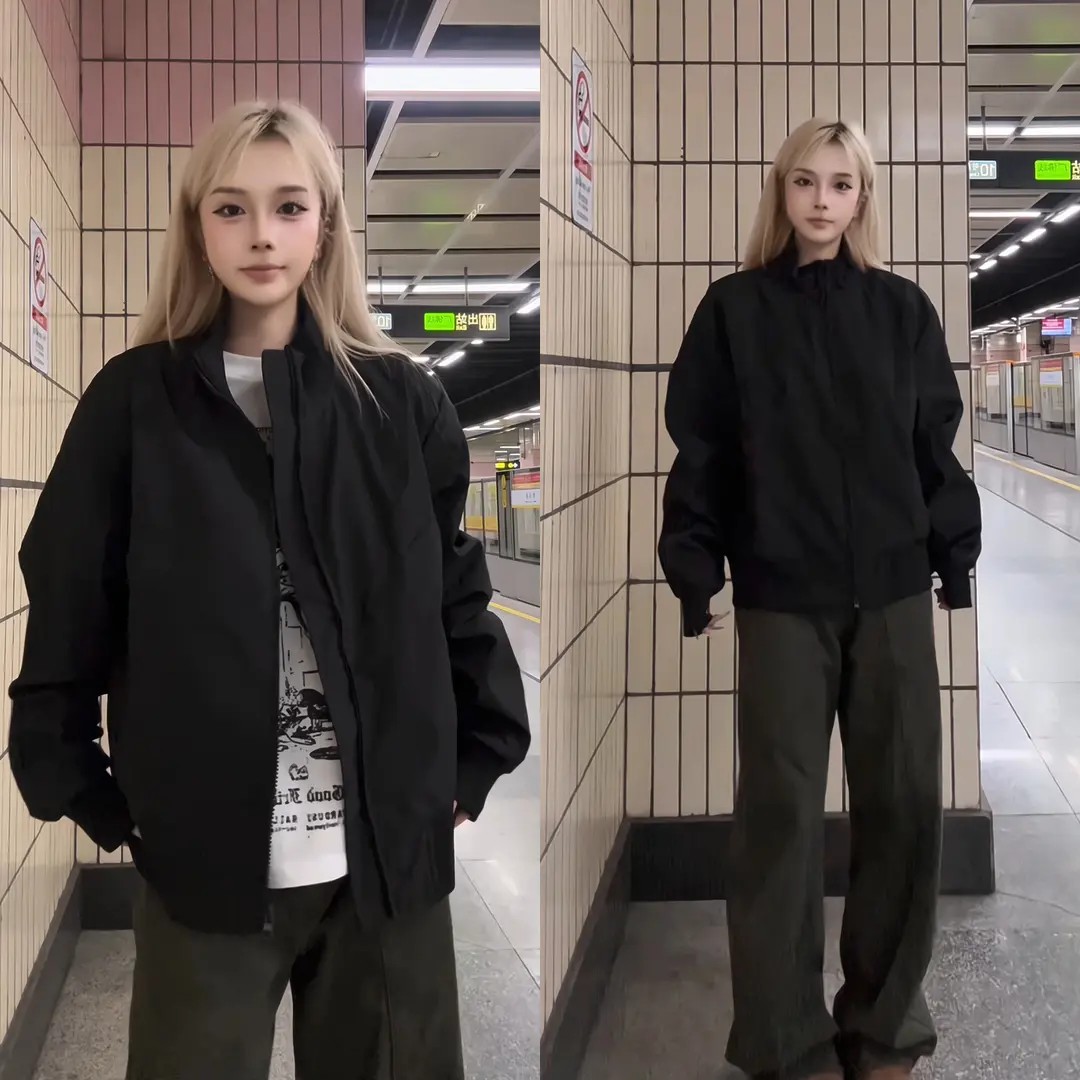 高街痞帅棒球服 外套美式 藏青色立领飞行员夹克男秋季 cleanfit短款