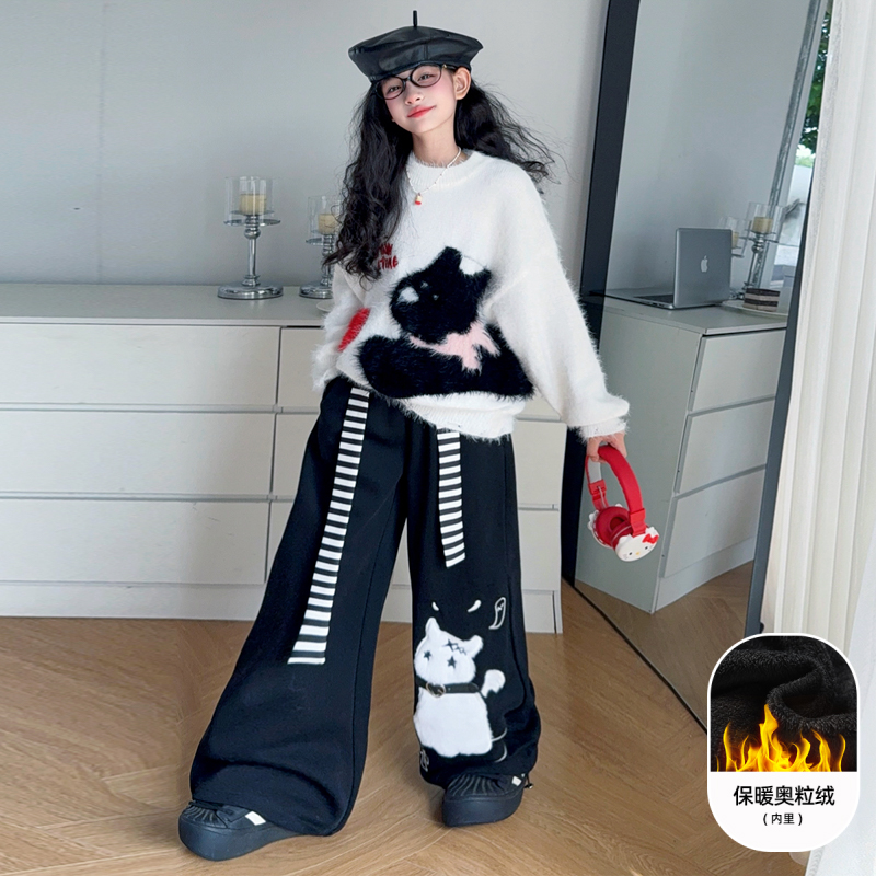 女孩阔腿长裤 女童加绒卫裤 加厚运动裤 儿童休闲冬季 潮 秋冬2025新款