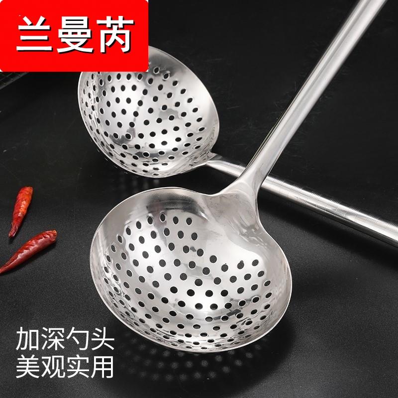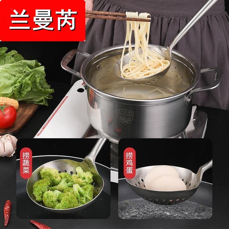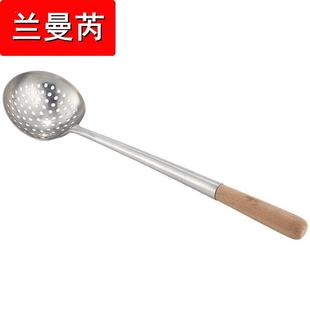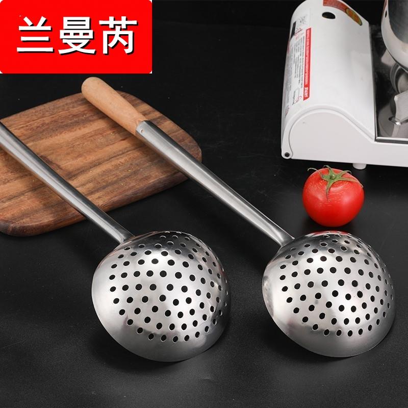 不锈钢漏勺大号加长手柄炒漏勺饭店酒店商用厨师钢木柄菜漏壳过滤
