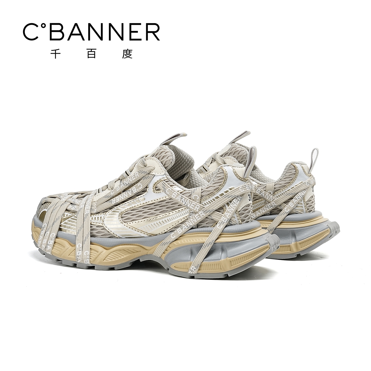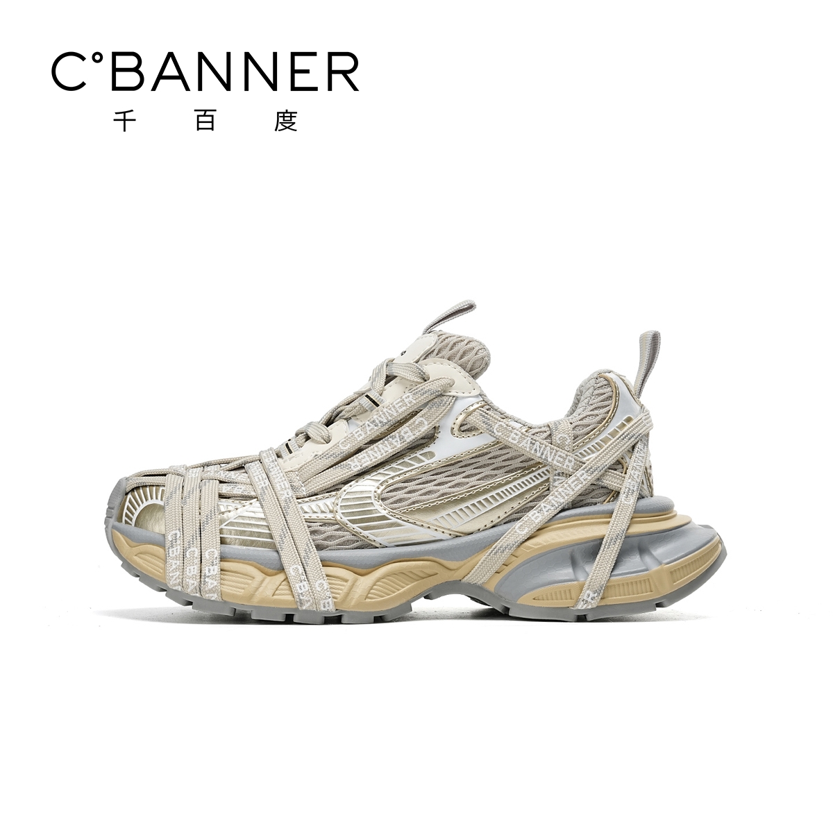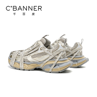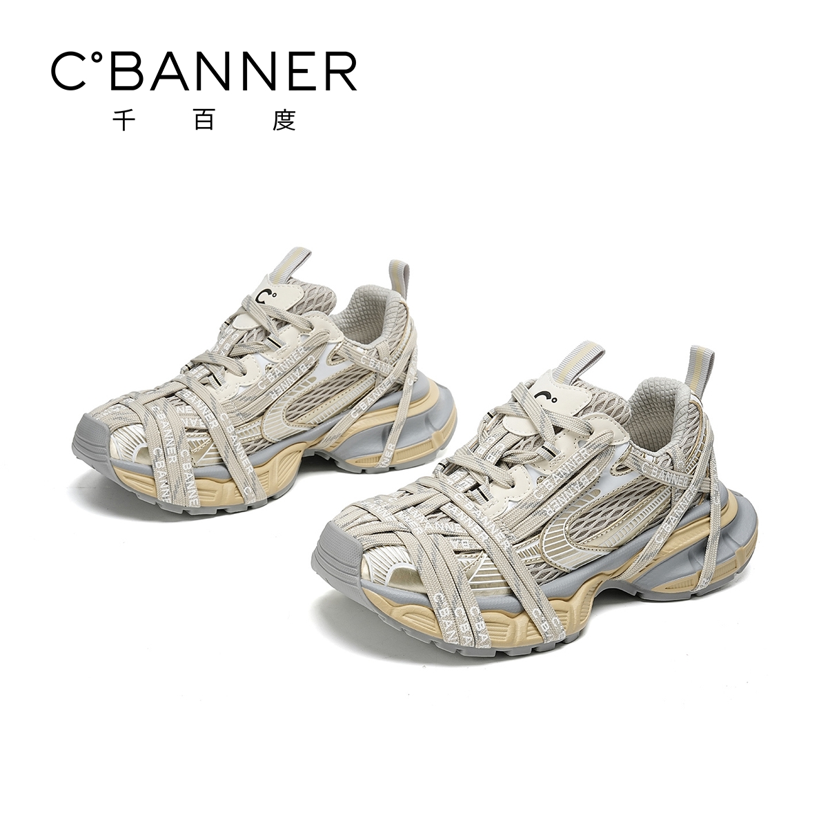 蜘蛛网面透气百搭运动休闲鞋 新款 女2025秋季 千百度厚底绑带老爹鞋