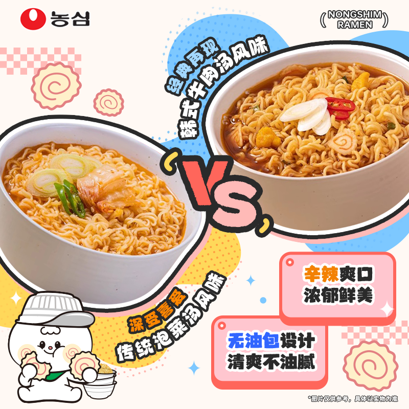进口农心牛肉泡菜小碗面原装 方便面速食 韩国泡面辣白菜速食碗装