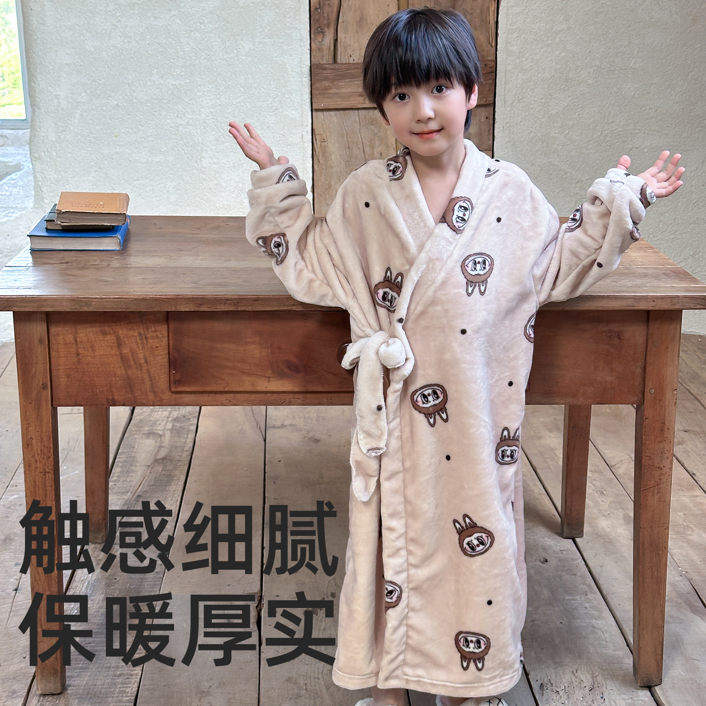 新款 加绒睡袍 吸水儿童加厚法兰绒男童浴袍保暖浴衣女童宝宝秋冬季