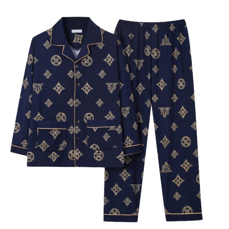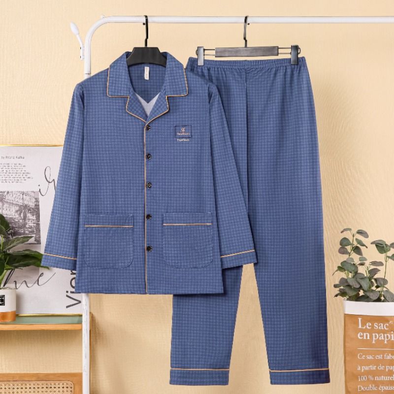 长袖 开衫 男士 加大码 中年爸爸家居服 睡衣中老年人春秋薄款 睡衣男款