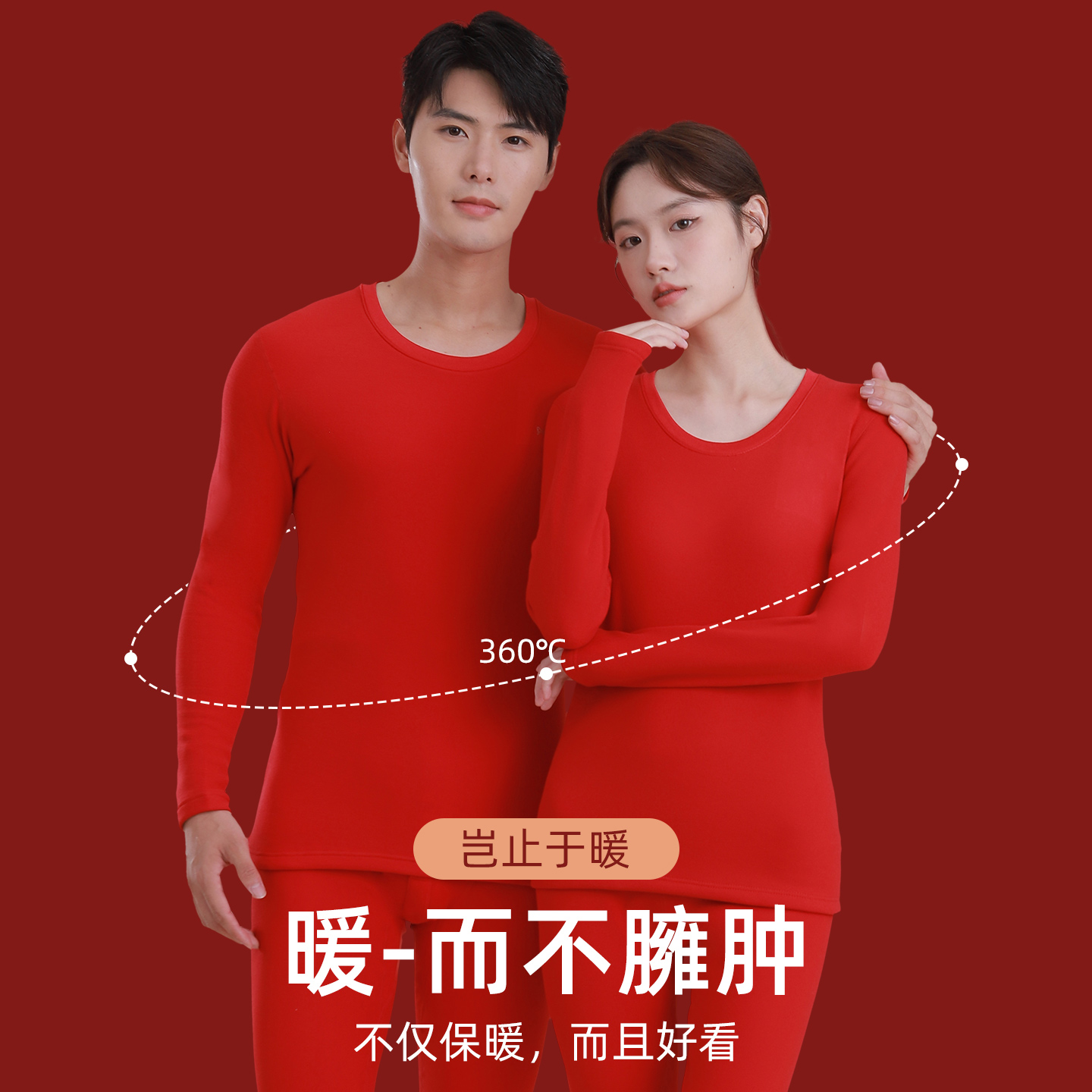 女士秋冬男马年红色情侣保暖内衣套装 都市丽人本命年秋衣秋裤 套装