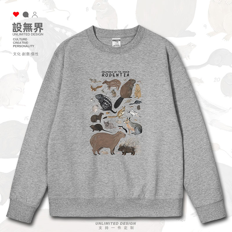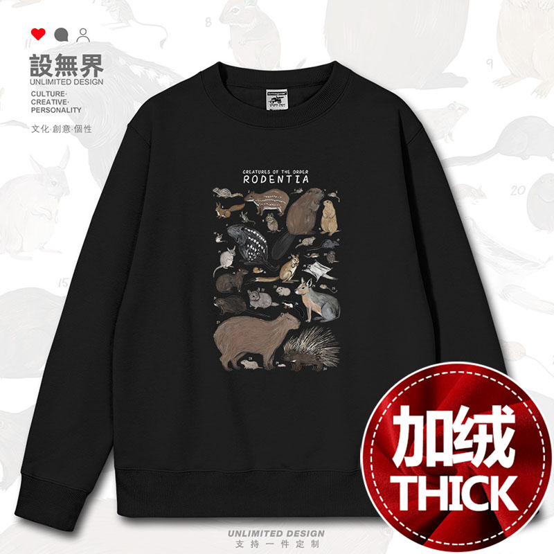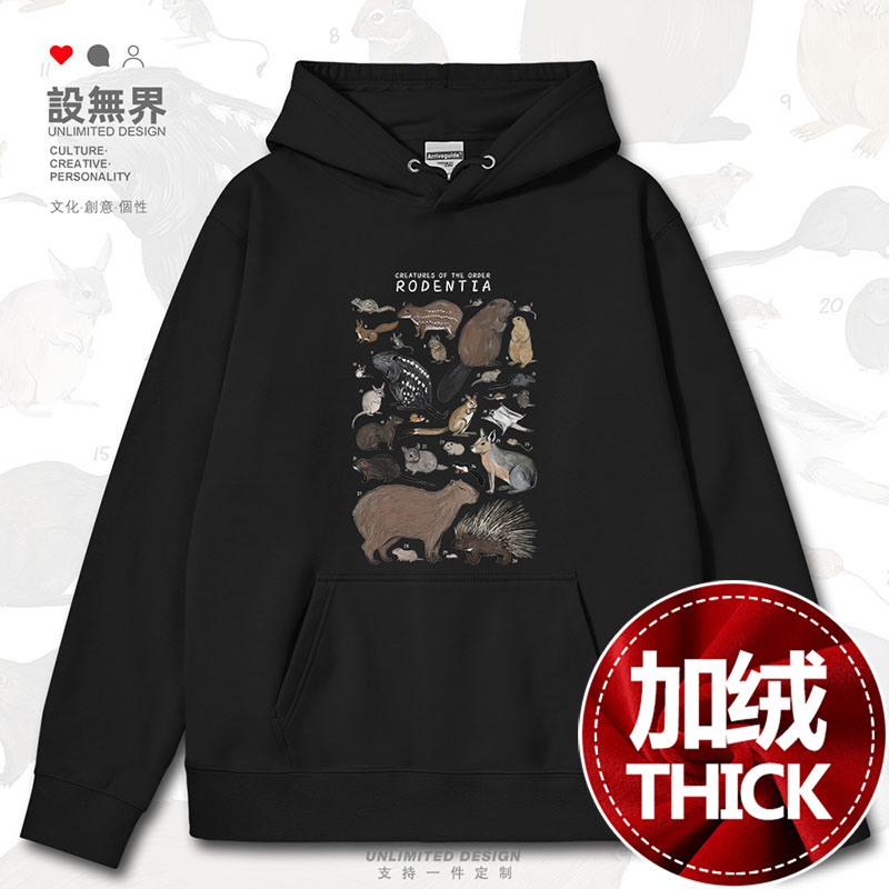 无界 潮设 啮齿目松鼠动物科普手绘插画连帽卫衣男女个性 创意帽衫