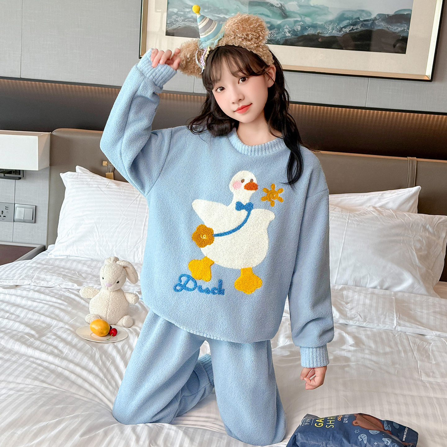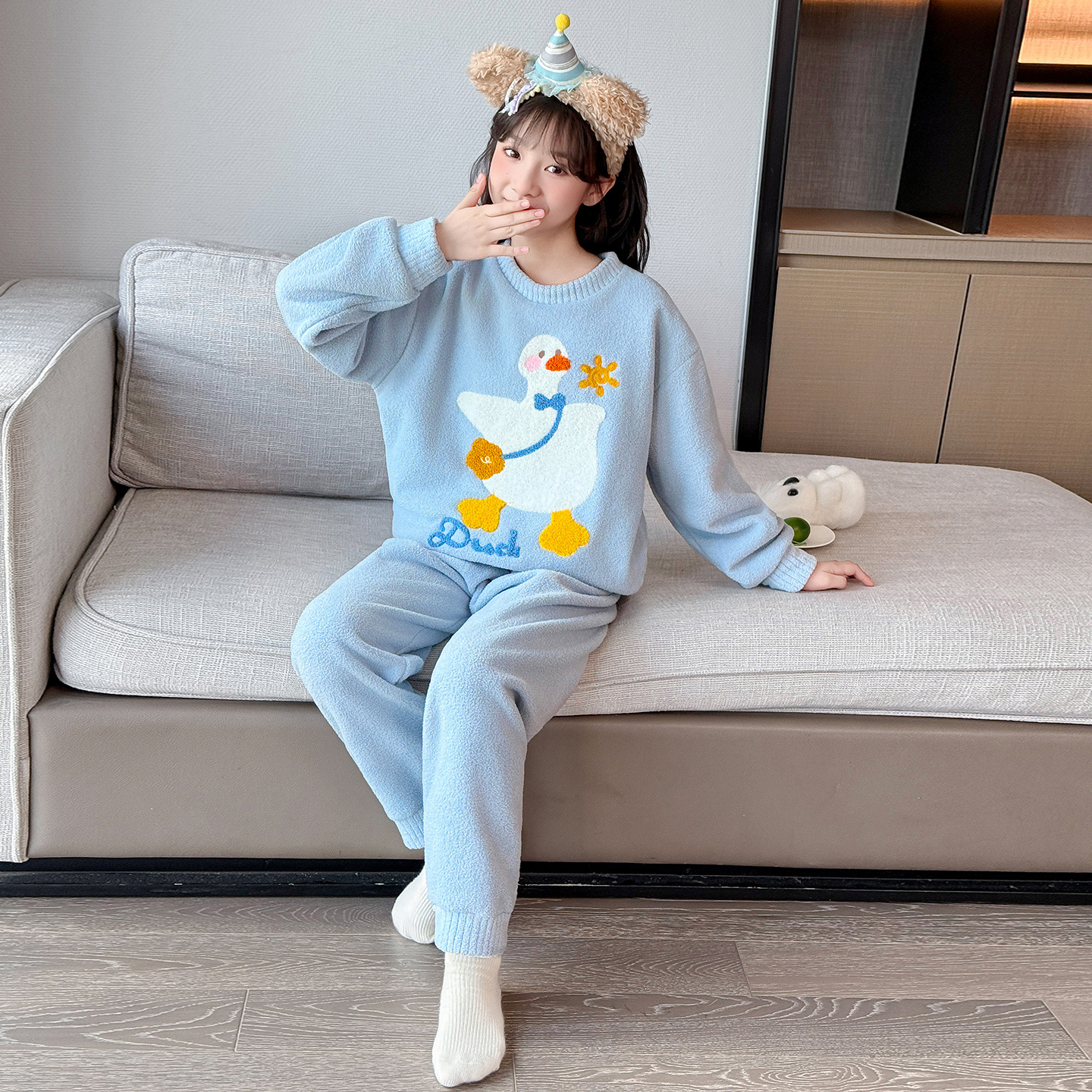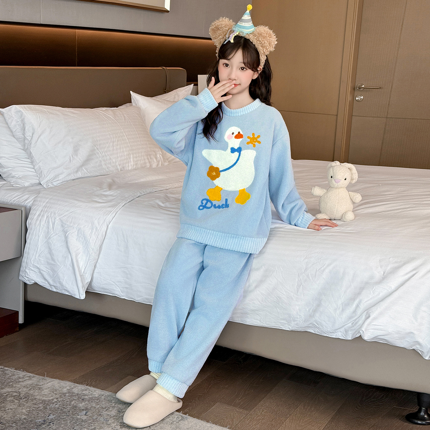米粒绒加厚甜美保暖可外穿家居服 秋冬季 女童卡通长袖 睡衣2025新款