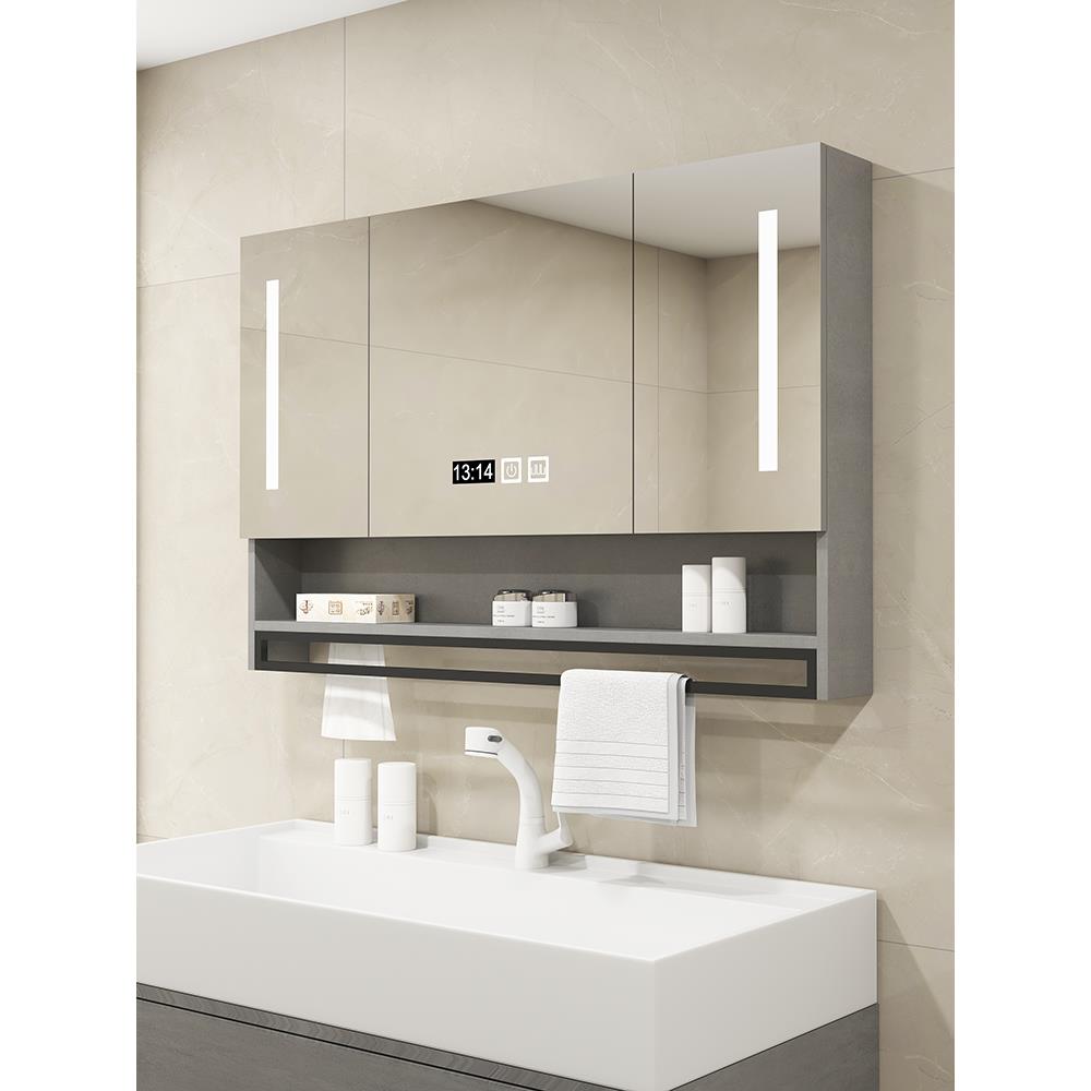 实木浴室智能镜柜单独挂墙式 卫生间梳妆镜洗手间镜子置物架储物柜
