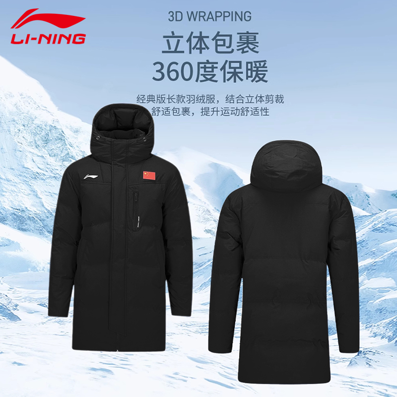 衣服官方保暖上衣连帽运动外套 鸭绒长款 李宁火锅羽绒服 女冬季