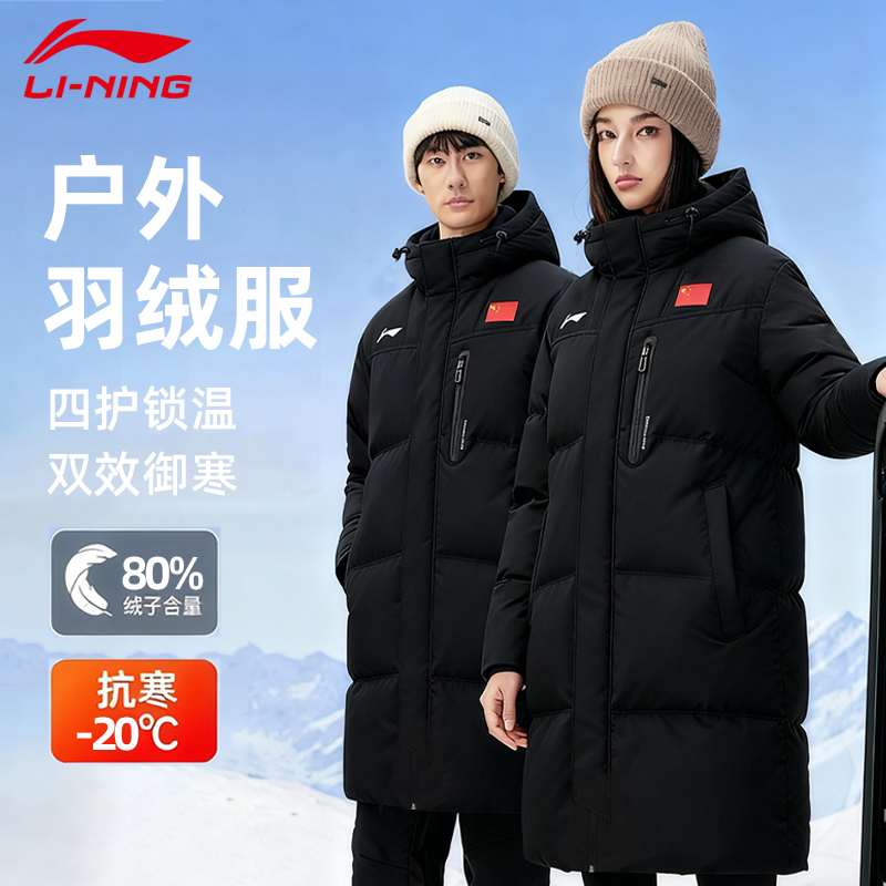 运动外套女 鸭绒加厚上衣情侣保暖衣服长款 李宁火锅羽绒服 男冬季