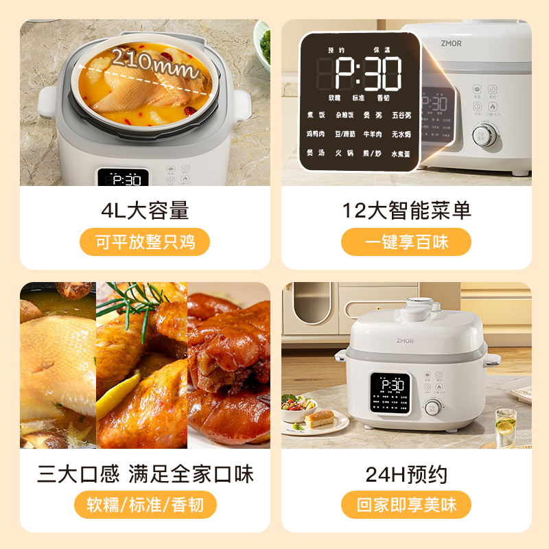择享小魔厨电压力锅4L家用小型多功能电饭煲全自动智能高压锅新款