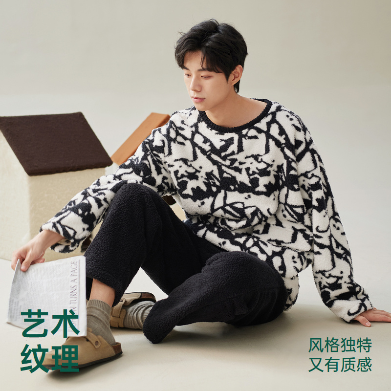 加绒加厚保暖珊瑚绒家居服套装 轩靓 冬季 法兰绒睡衣男士 抗静电