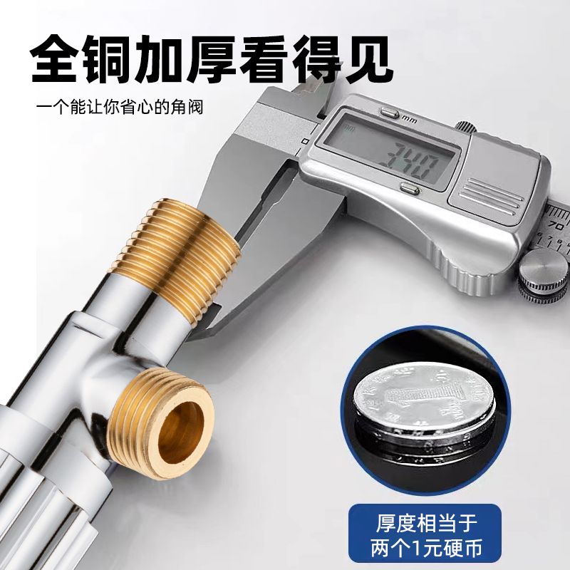 家用全铜冷热水角阀马桶三角阀一进二出加长款 4分通用大流量球阀