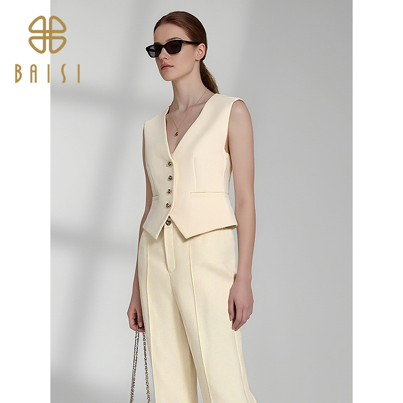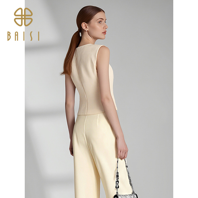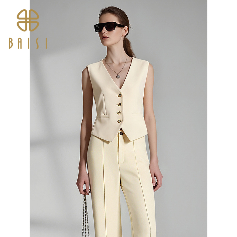 上衣干练气质显瘦欧美风名媛休闲V领马甲女 百丝无袖 2025秋季 新品