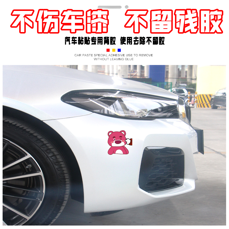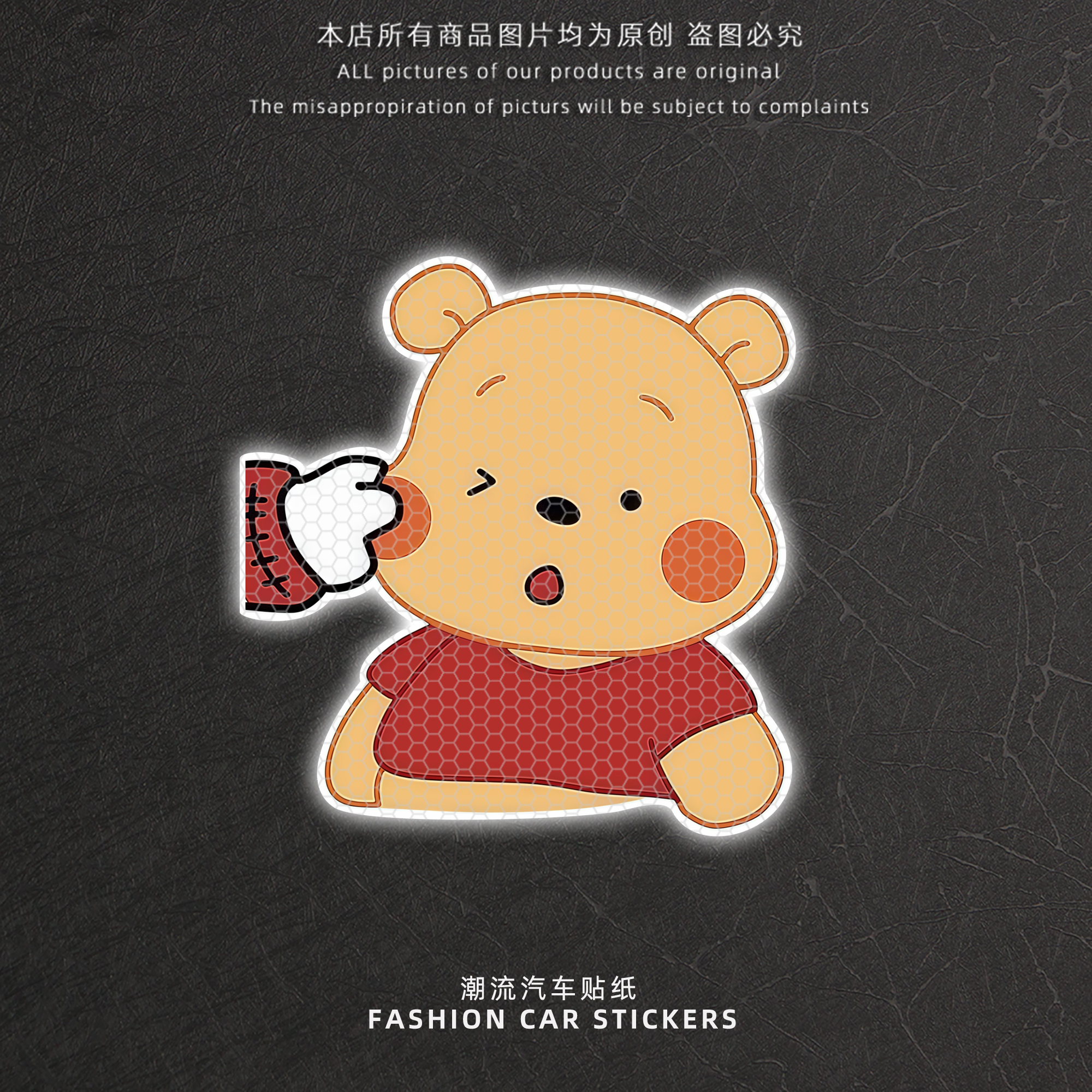 草莓熊维尼熊反光车贴汽车车尾后挡玻璃电动车装 贴 饰划痕遮挡个性