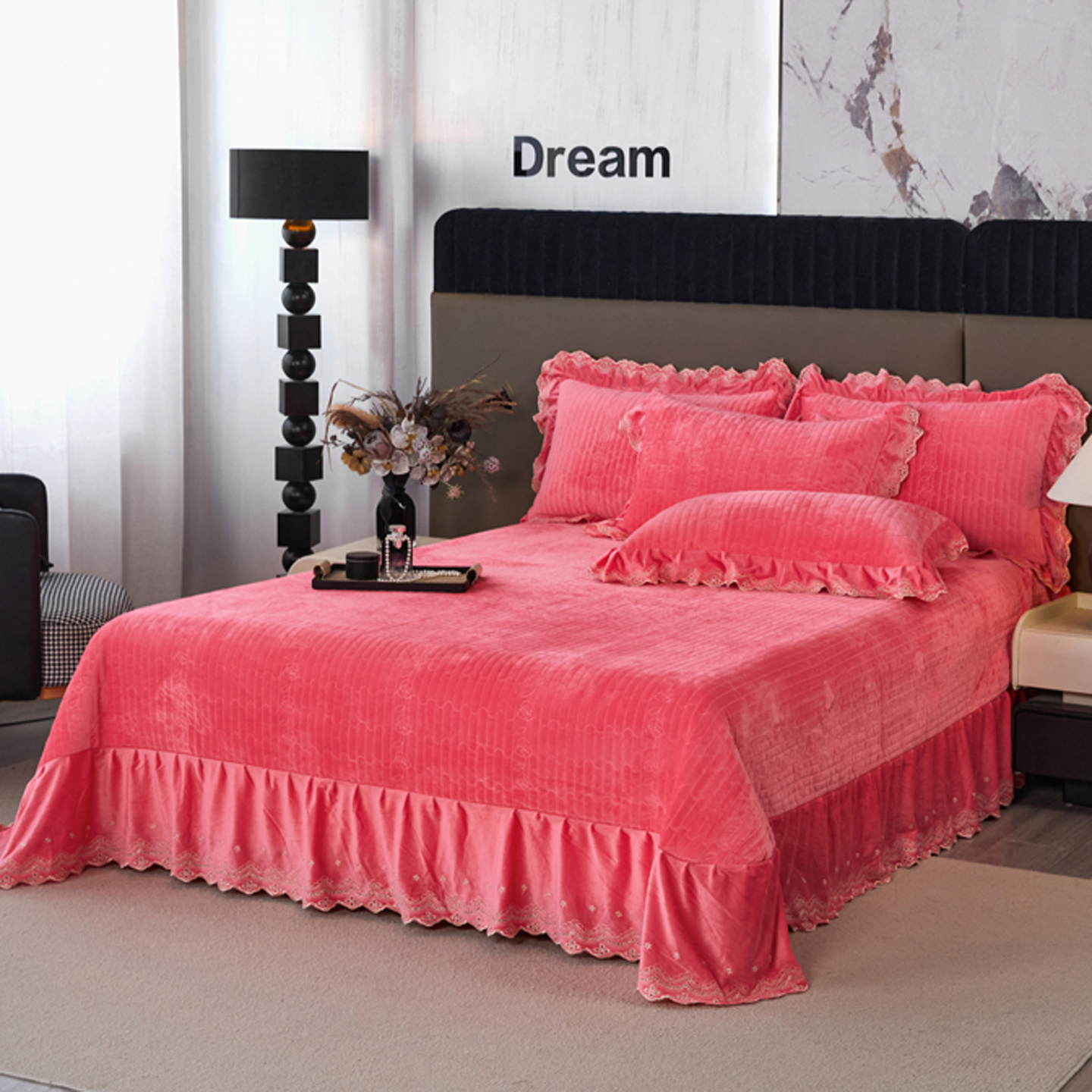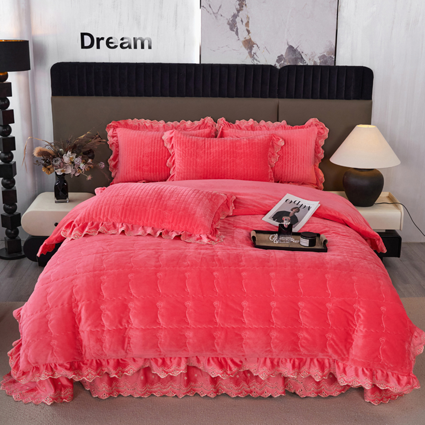 秋冬加厚宝宝婴儿绒夹棉床盖四件套高端加绒保暖花边床裙被套床品