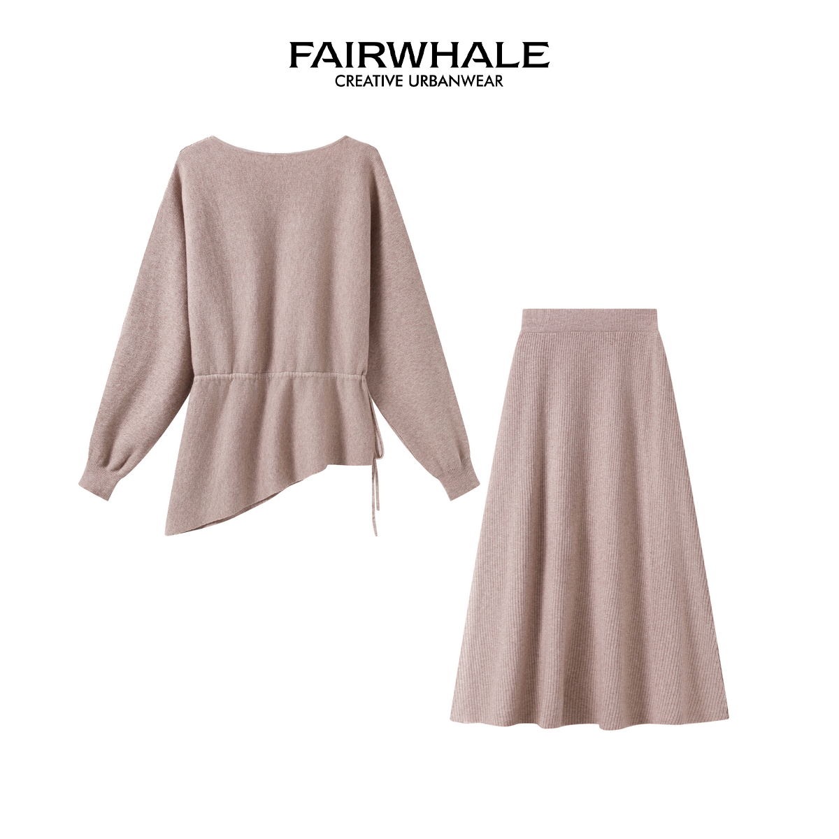 柔软亲肤宽松套装 半身裙两件套秋季 女 百搭抽绳针织衫 马克华菲时尚