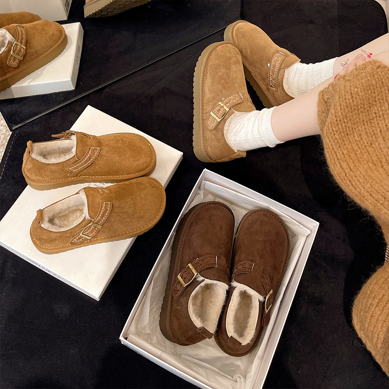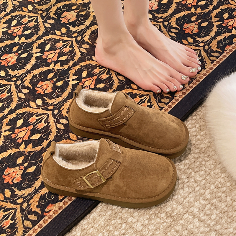 雪地靴女款 复古厚底加绒加厚勃肯鞋 豆豆鞋 保暖棉鞋 女2025秋冬新款