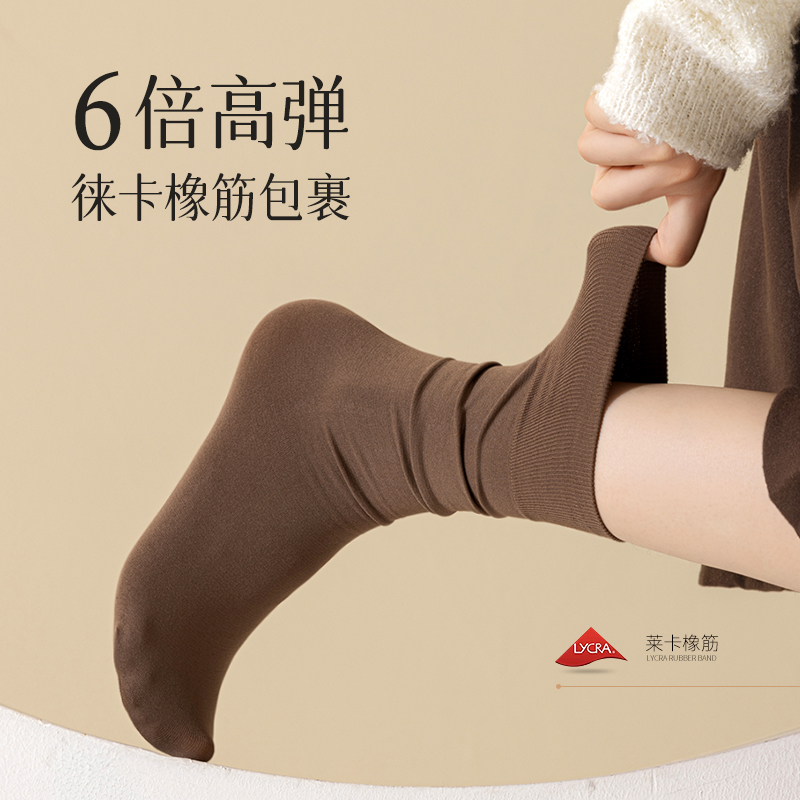 袜子女中筒袜春秋美拉德棕色长筒月子袜秋冬搭配小皮鞋 堆堆袜长袜