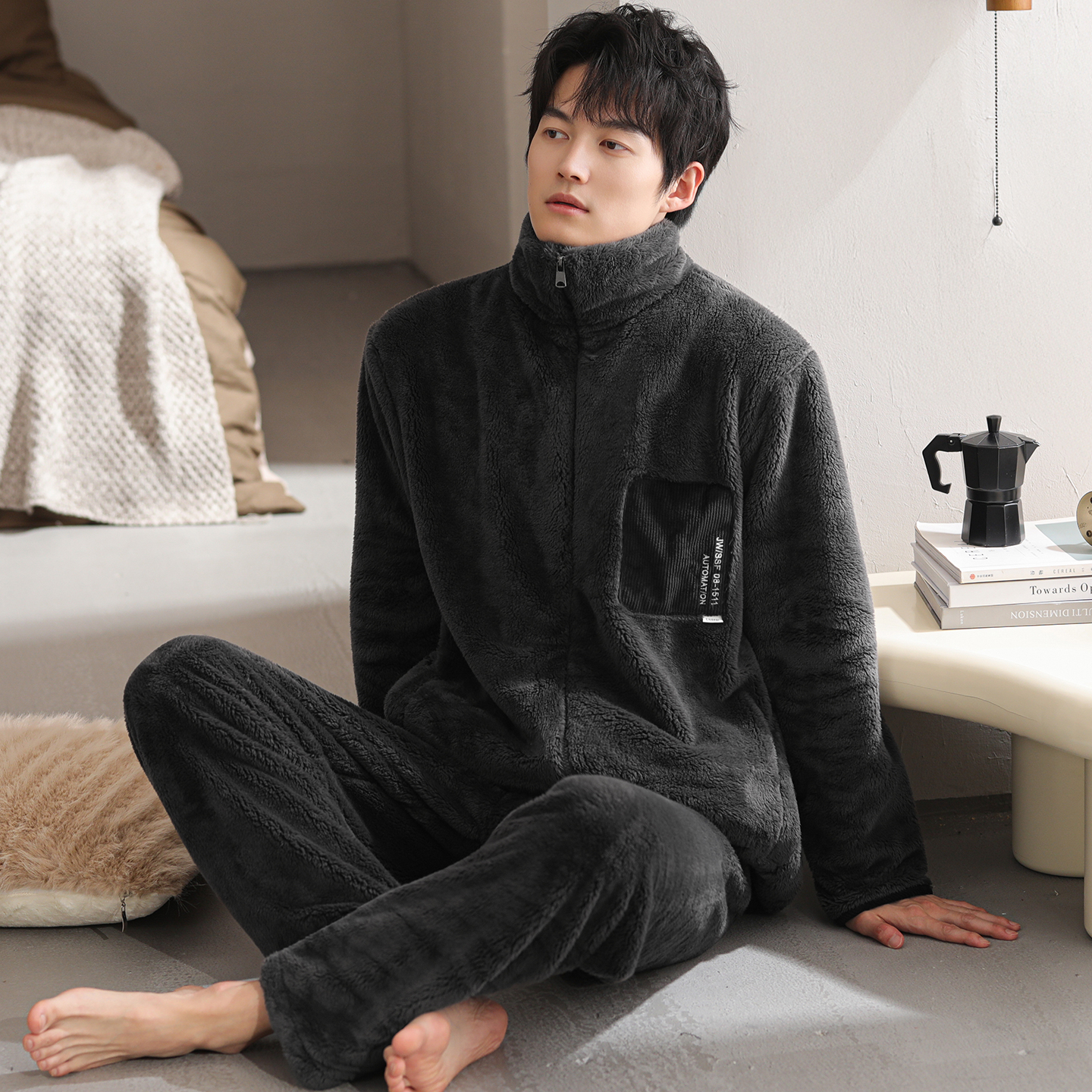 秋冬季 2025新款 猫人半边绒家居服套装 男女睡衣可外穿 肖战同款