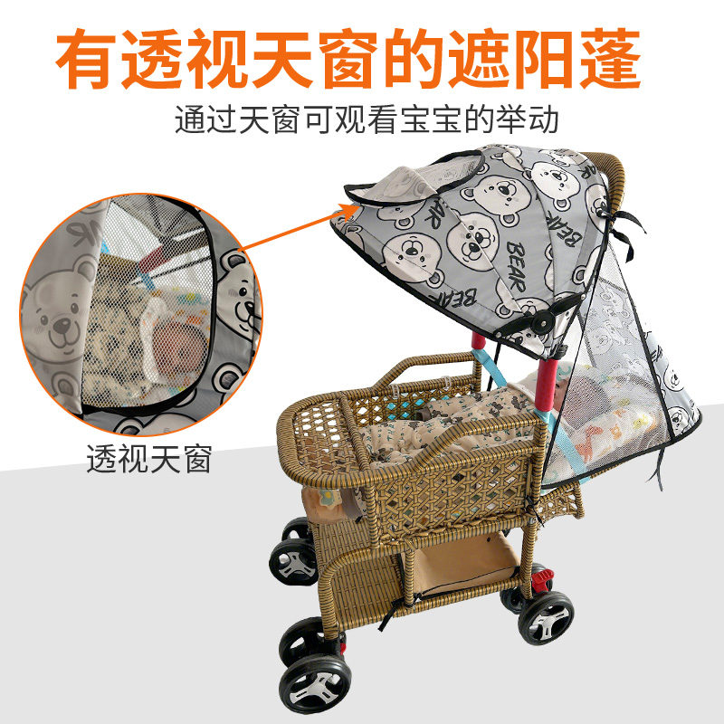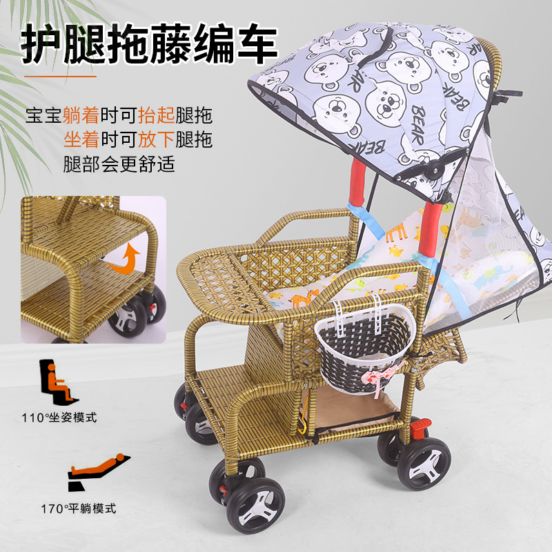 夏季 婴儿仿藤推车轻便宝宝防竹藤手推车小孩儿童藤编车竹编手推车