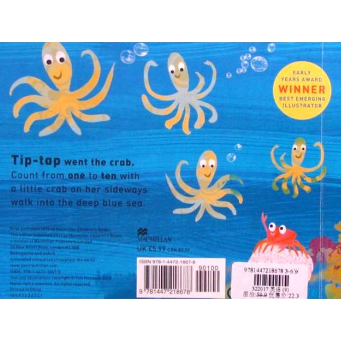 英语原版 书小螃蟹踢踏踢踏走绘本数学启蒙亲子共读TimHopgood获奖插画家作品适合36岁儿童学习数字110和简单加法认识海洋生物