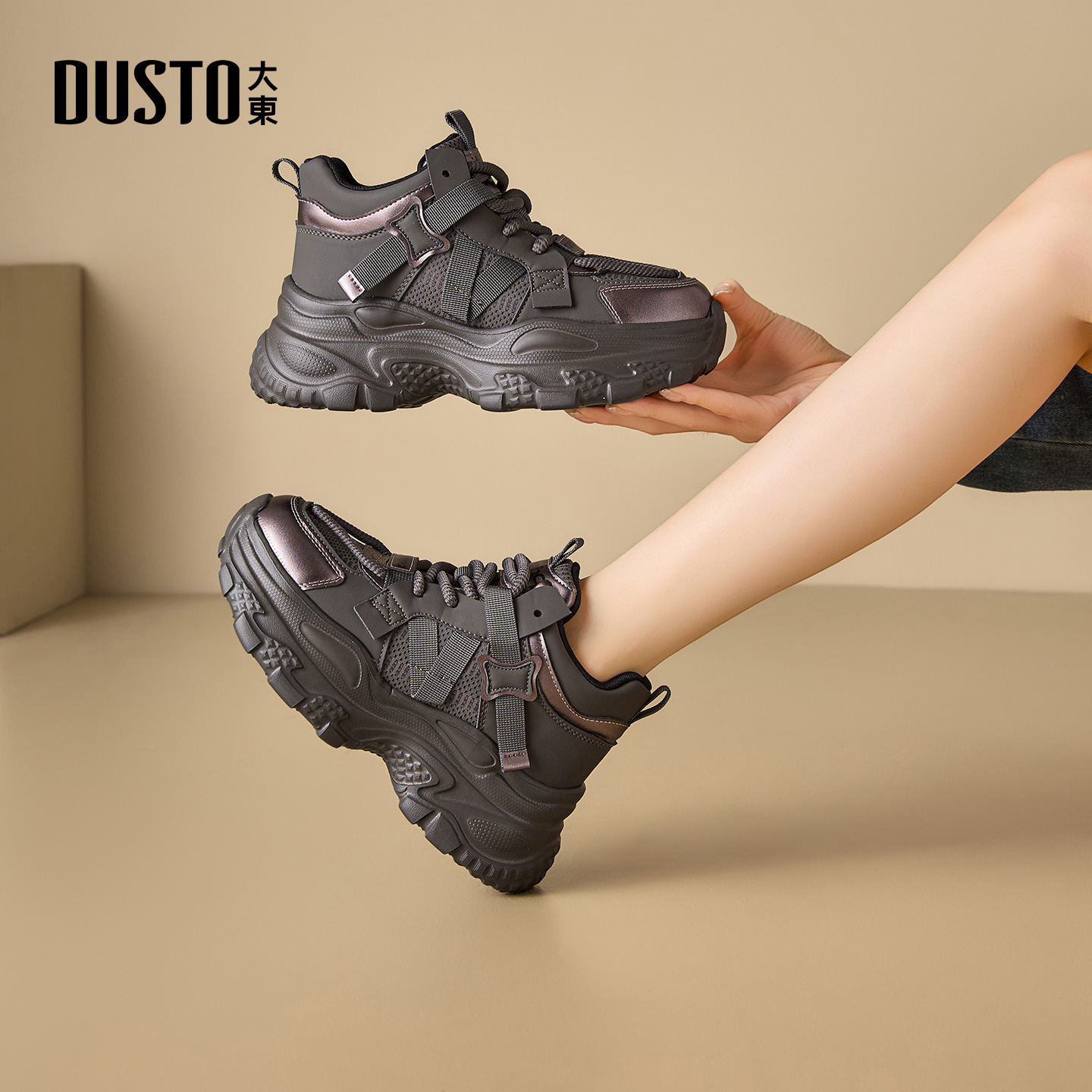 厚底老爹鞋 休闲鞋 女2025新款 黑色软底运动鞋 秋季 大东官方巨好看