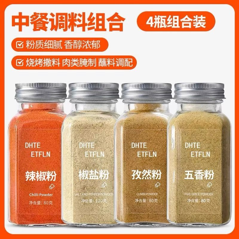 孜然粉椒盐粉辣椒粉辣椒面五香粉烧烤调料撒料家用组合商用瓶装