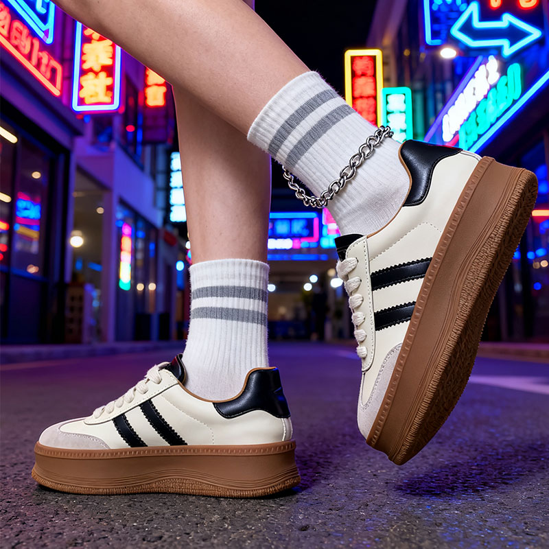 子2025春秋季 黑色鞋 新款 厚底德训鞋 增高百搭运动板鞋 女款 休闲女鞋