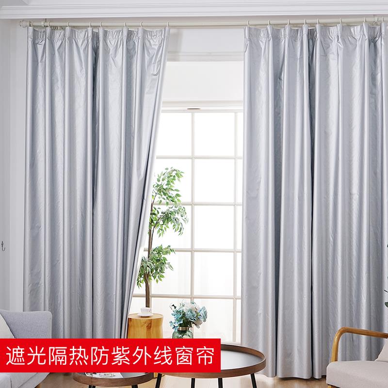 全遮光布遮阳窗帘防晒隔热窗帘不透光避光卧室客厅阳台免打孔布料