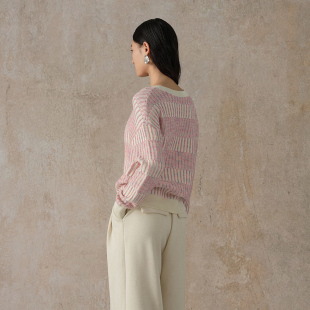 百搭条纹毛衫 新款 女拉谷谷2025冬季 LAGOGO海魂亨利领0压感针织衫