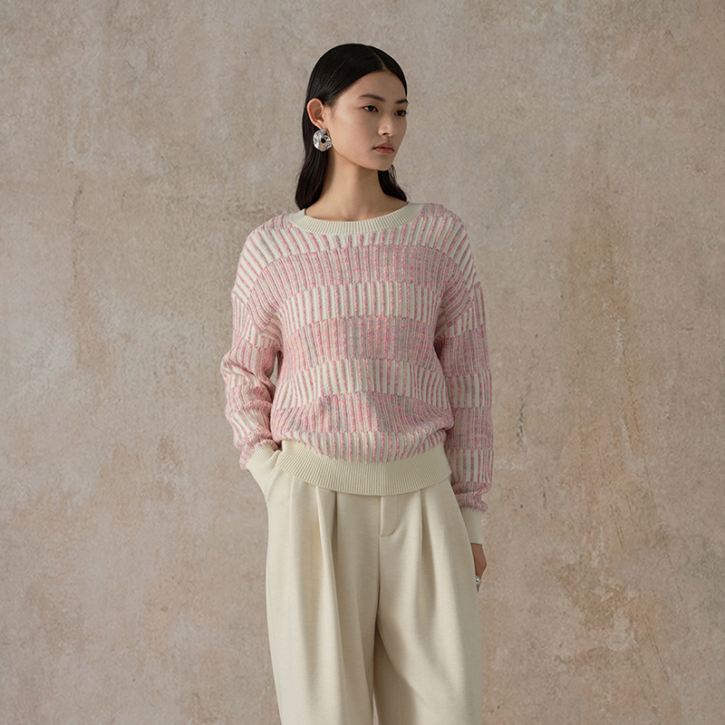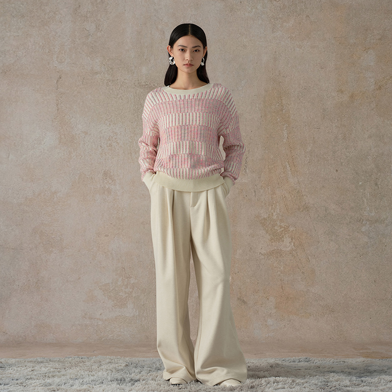 高级感上衣宽松打底针织衫 圆领100%纯山羊绒衫 女高端毛衣秋冬新款