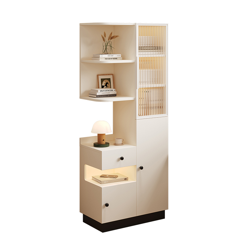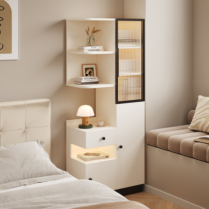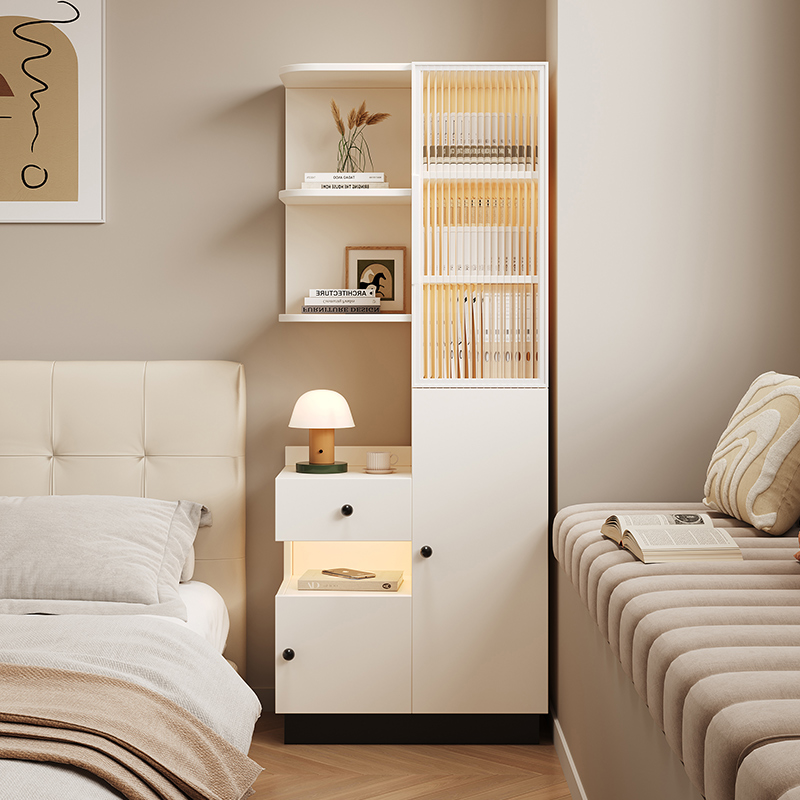 实木床头柜书架一体卧室家用小户型床边柜子奶油风窄柜储物柜高柜