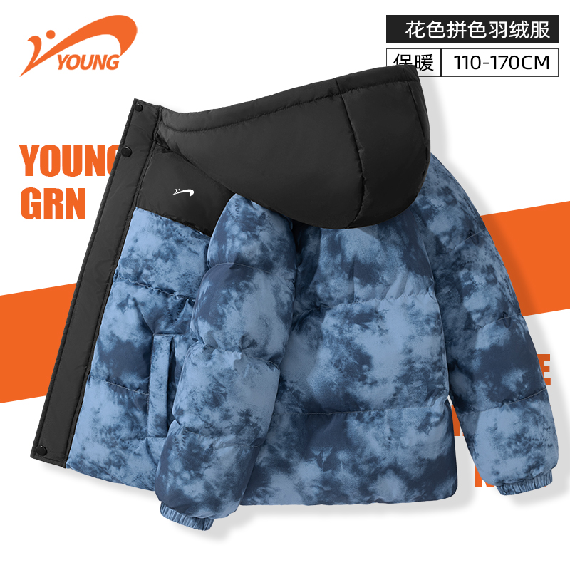 轻松羽绒森马羽绒服男2024冬新款 发热三防情侣连帽外套面包服防寒