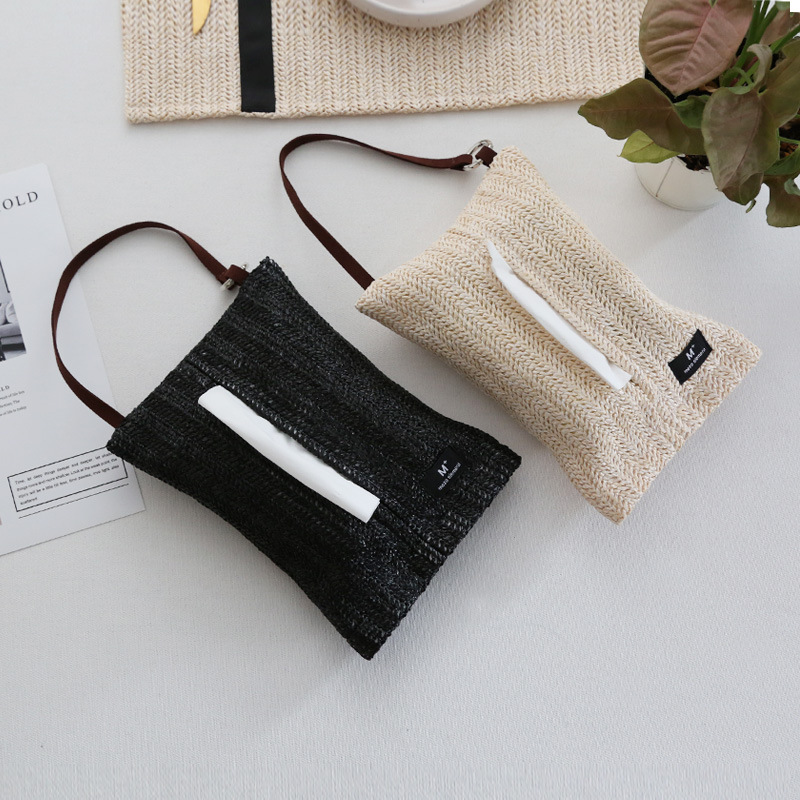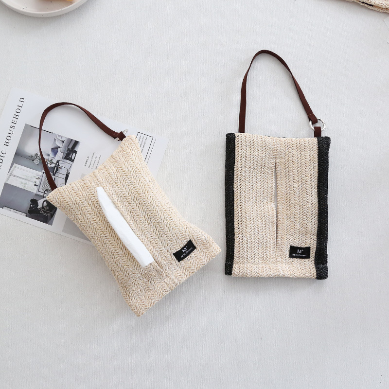 美作元 素编织桌面纸巾盒ins简约家用抽纸盒多功能车载悬挂纸巾袋