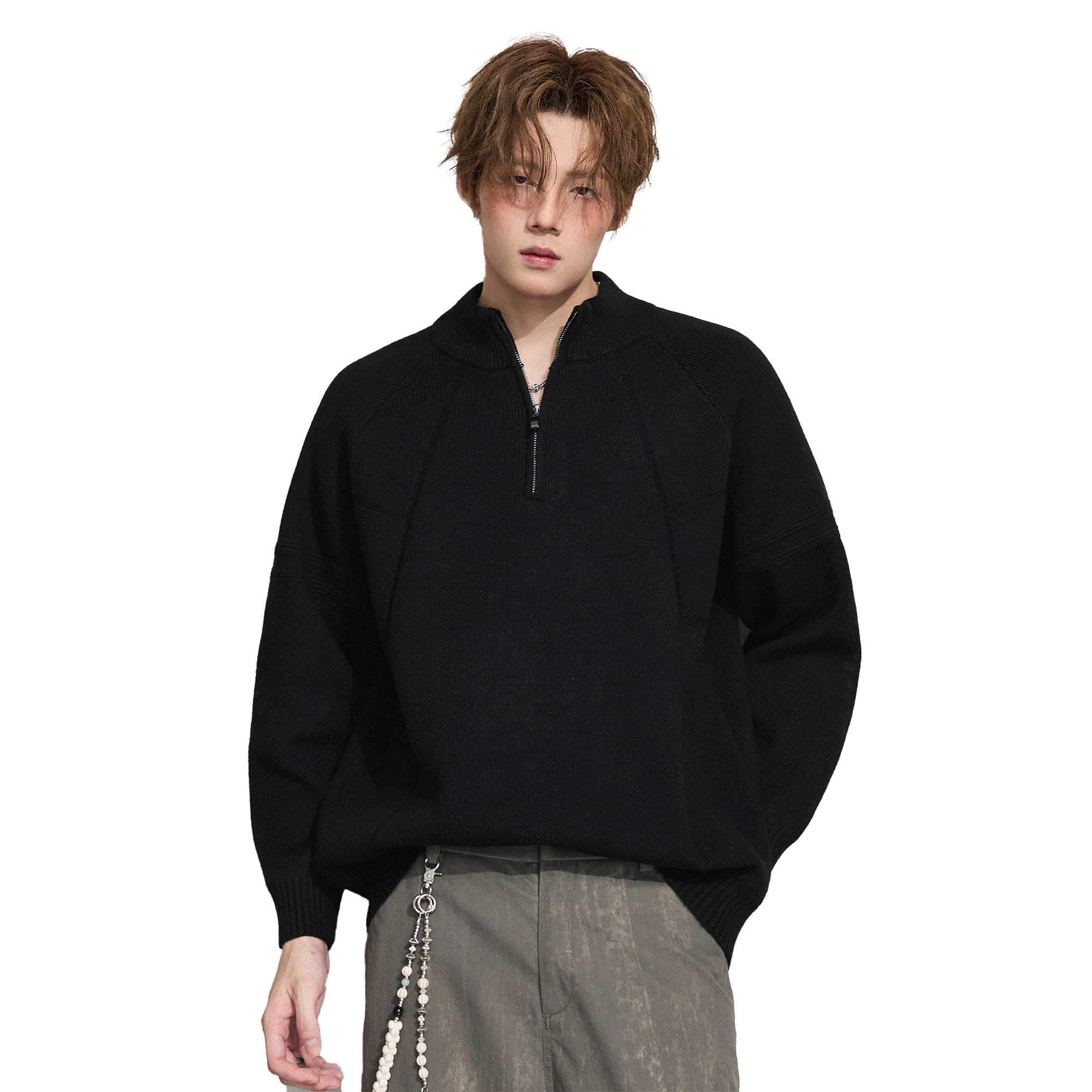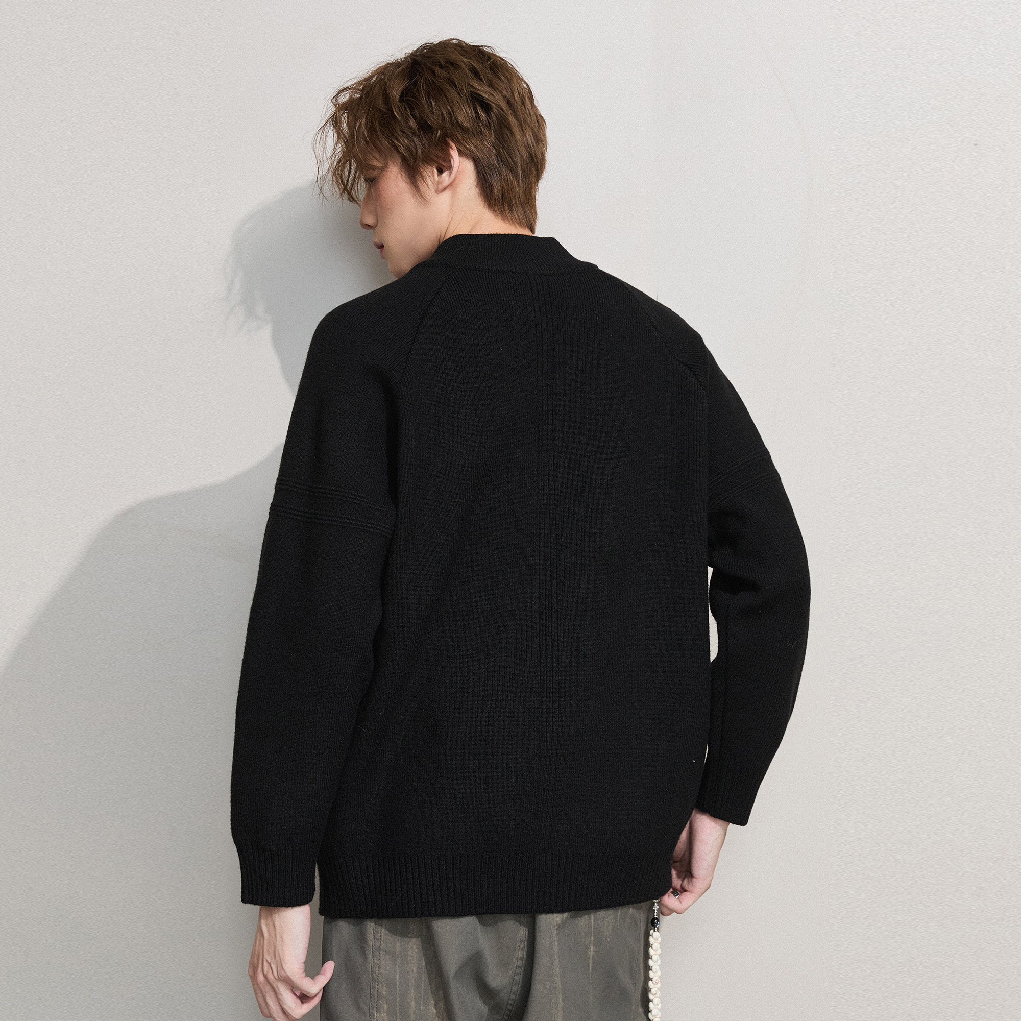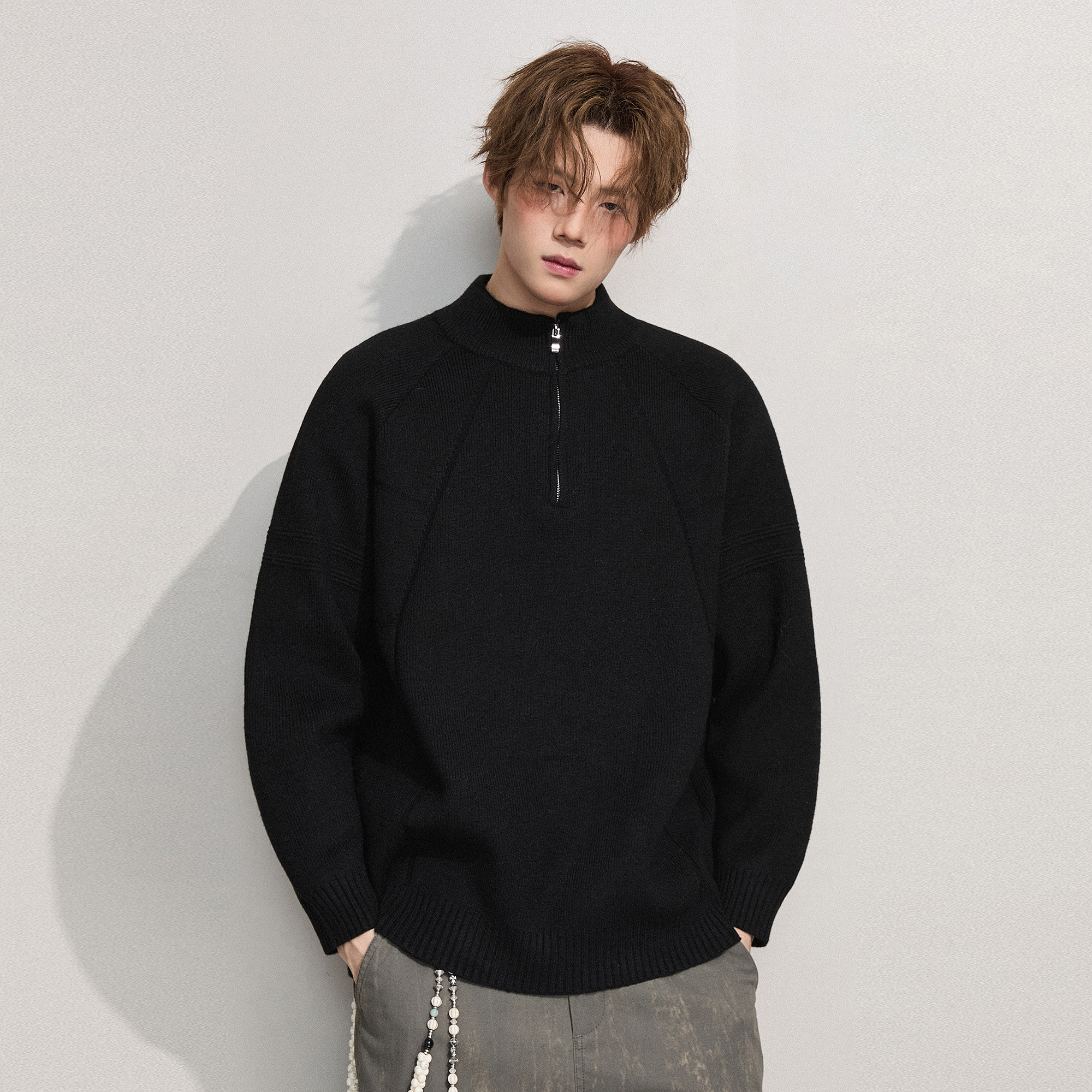 情侣休闲保暖上衣 半高领针织打底衫 ALLIN 黑色半拉链毛衣男秋冬季