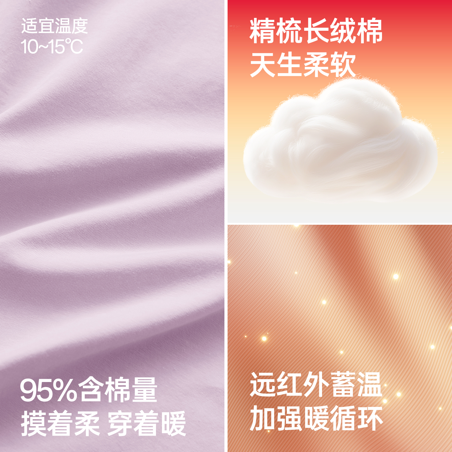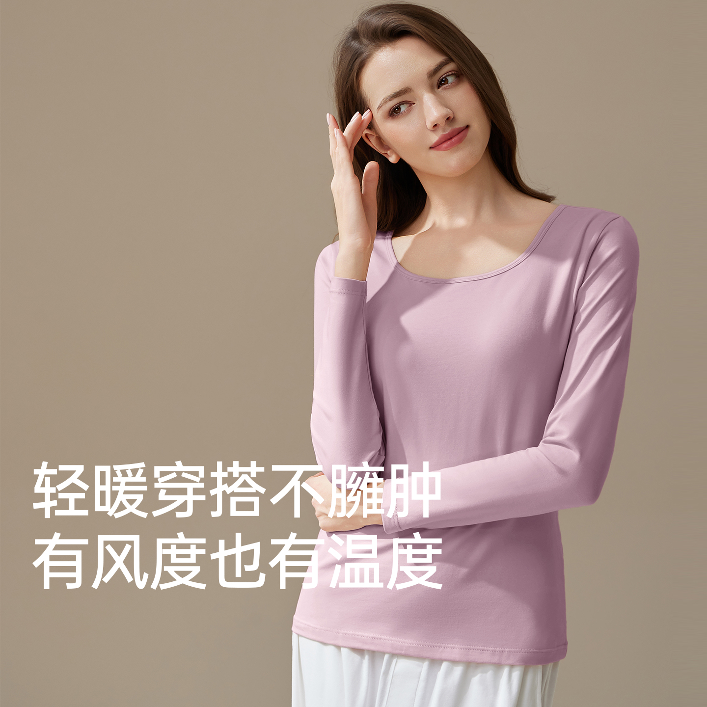 长袖 打底棉毛衫 上衣 抗菌秋衣女款 芬腾带胸垫保暖内衣女纯棉秋冬季