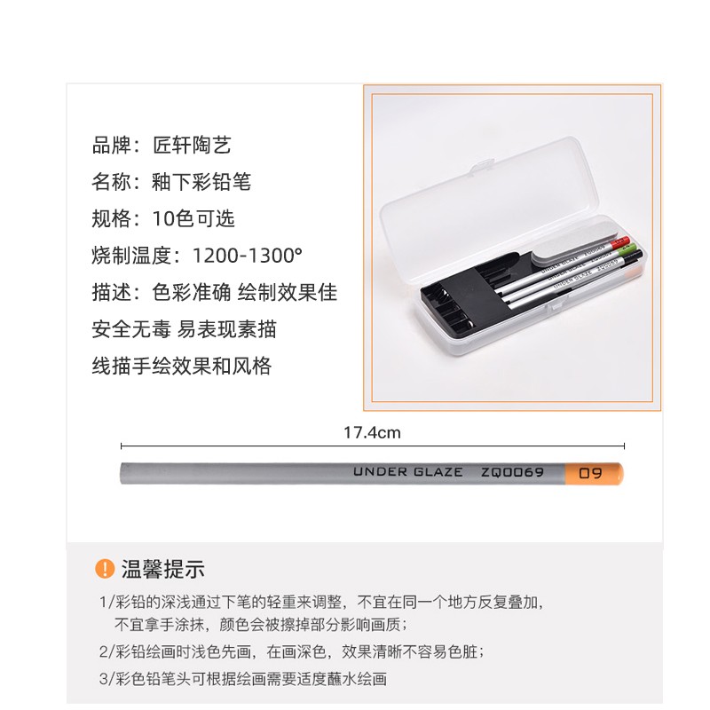 陶艺釉下彩铅笔 陶瓷彩绘铅笔勾线笔素坯陶吧学校DIY绘画手绘工具