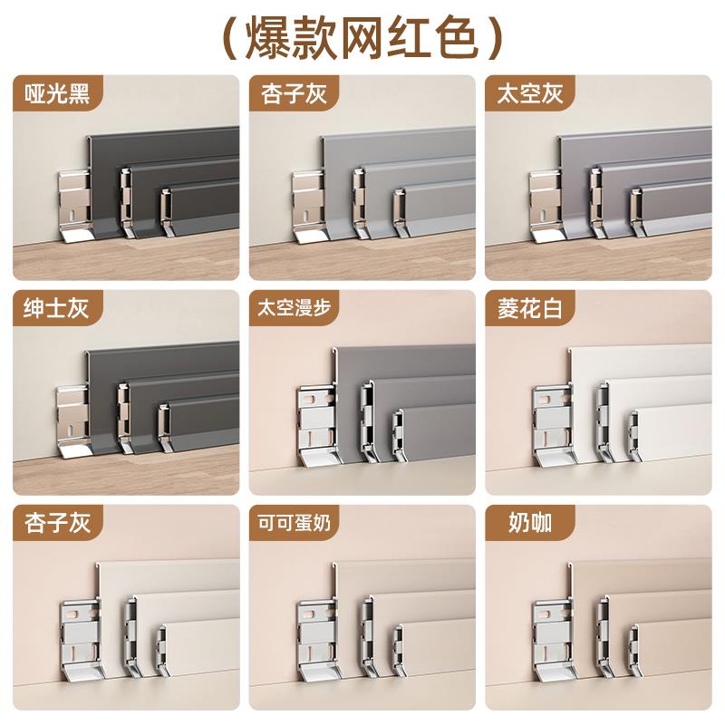 奶油风铝合金踢脚线6cm金属不锈钢新型卡扣地脚线极简超薄贴脚线
