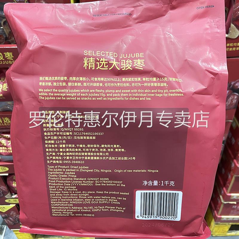 125g 泡茶烹饪配料果形饱满 天茨园精选骏枣1kg 山姆会员店代购