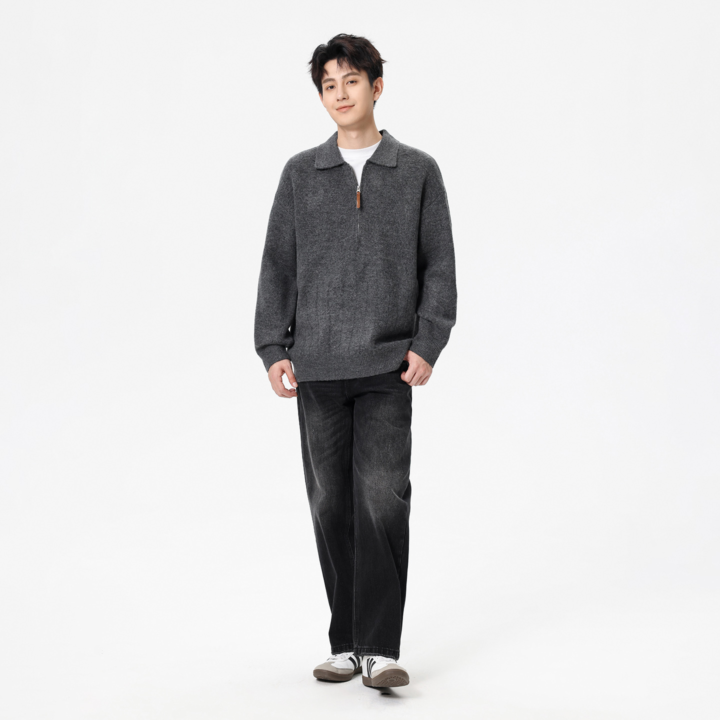hansca重磅560g仿牛绒半拉链翻领毛衣男2025新款 秋冬懒惰风针织衫