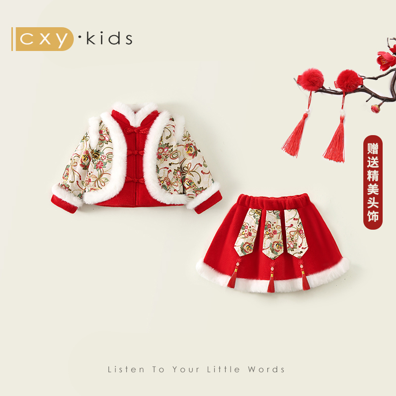 过年服周岁礼服女宝宝时尚 儿童中国风加厚唐装 连衣裙 冬季 女童套装